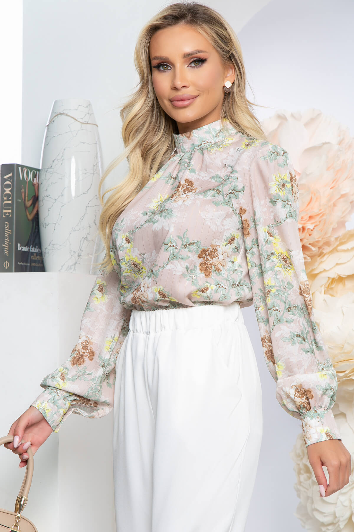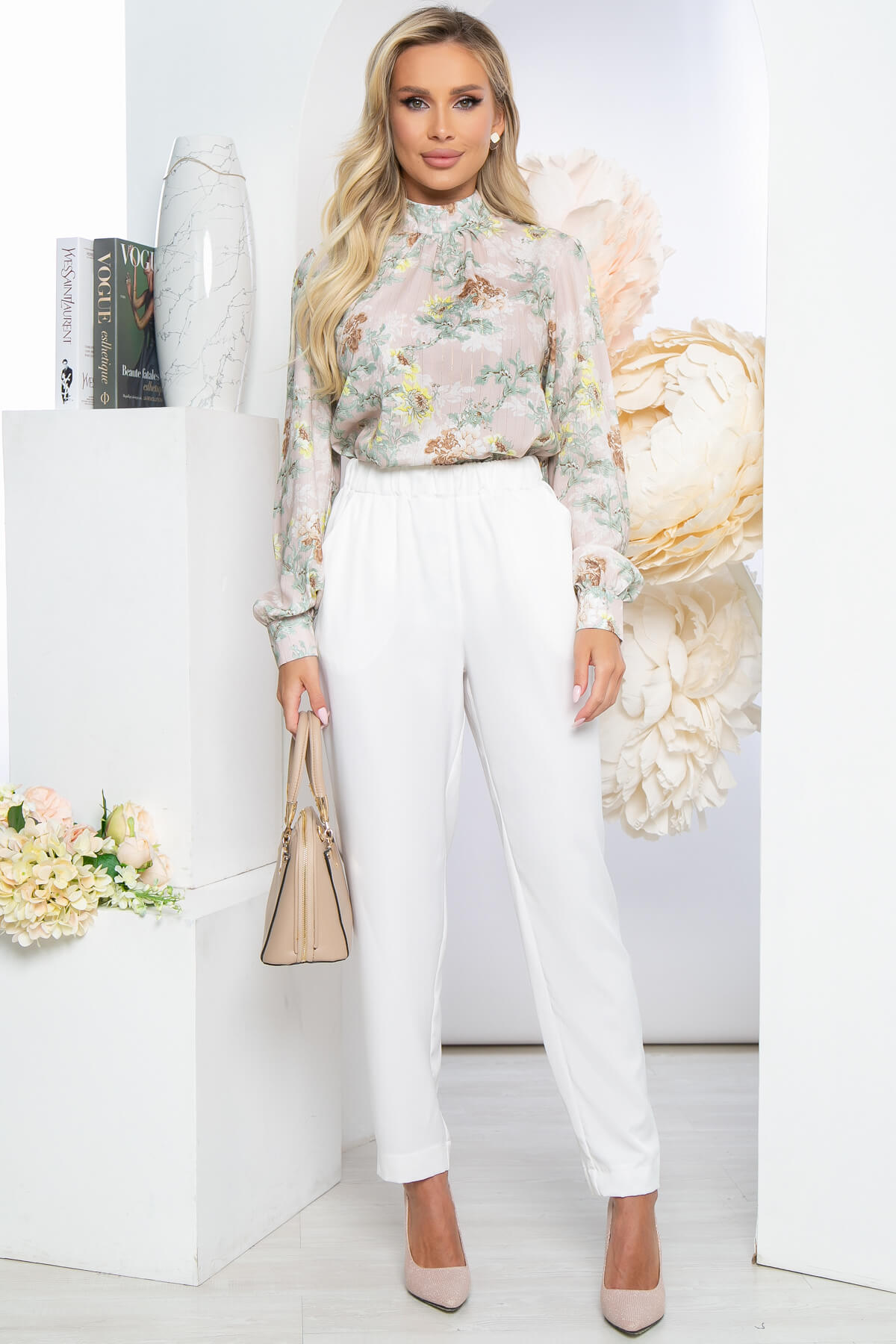 Базовая блуза женственного создана для нежных весенних образов. Модель в классическом оттенке идеально вписывается в любую обстановку от офисных будней и до праздничных мероприятий. Воротник-стойка, сзади застёгивается на петлю-пуговицу, по переду защипы. Блуза свободного кроя, рукав втачной, длинный, на манжете.
