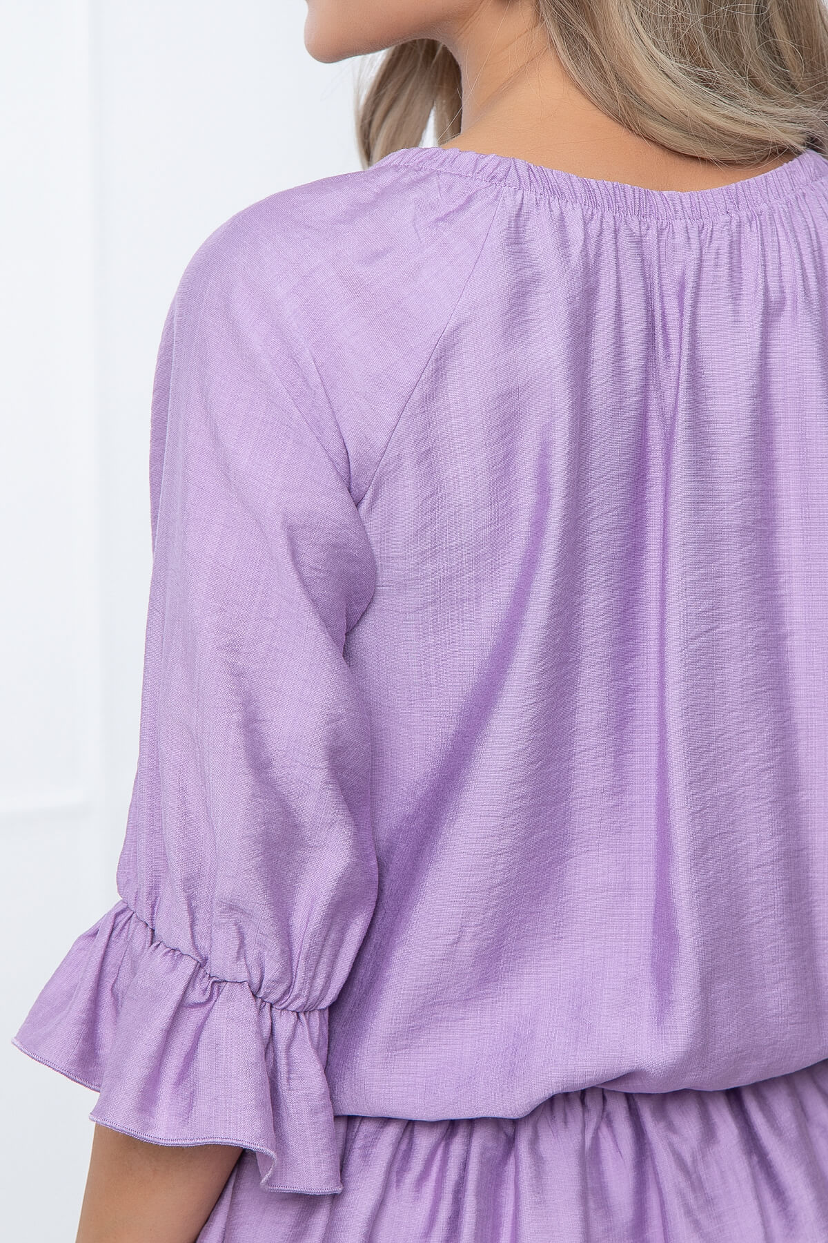 Блуза в модном оттенке - это отличная возможность проявить свою женственность. Рукав три четверти, по низу украшен воланом. Само изделие так же украшено по низу воланом, что придает образу легкости и воздушности. Горловина отработана резинкой, это позволяет спустить блузу на плечи, что придаст образу кокетства. Отлично будет смотреться как с брюками, так и с джинсами.