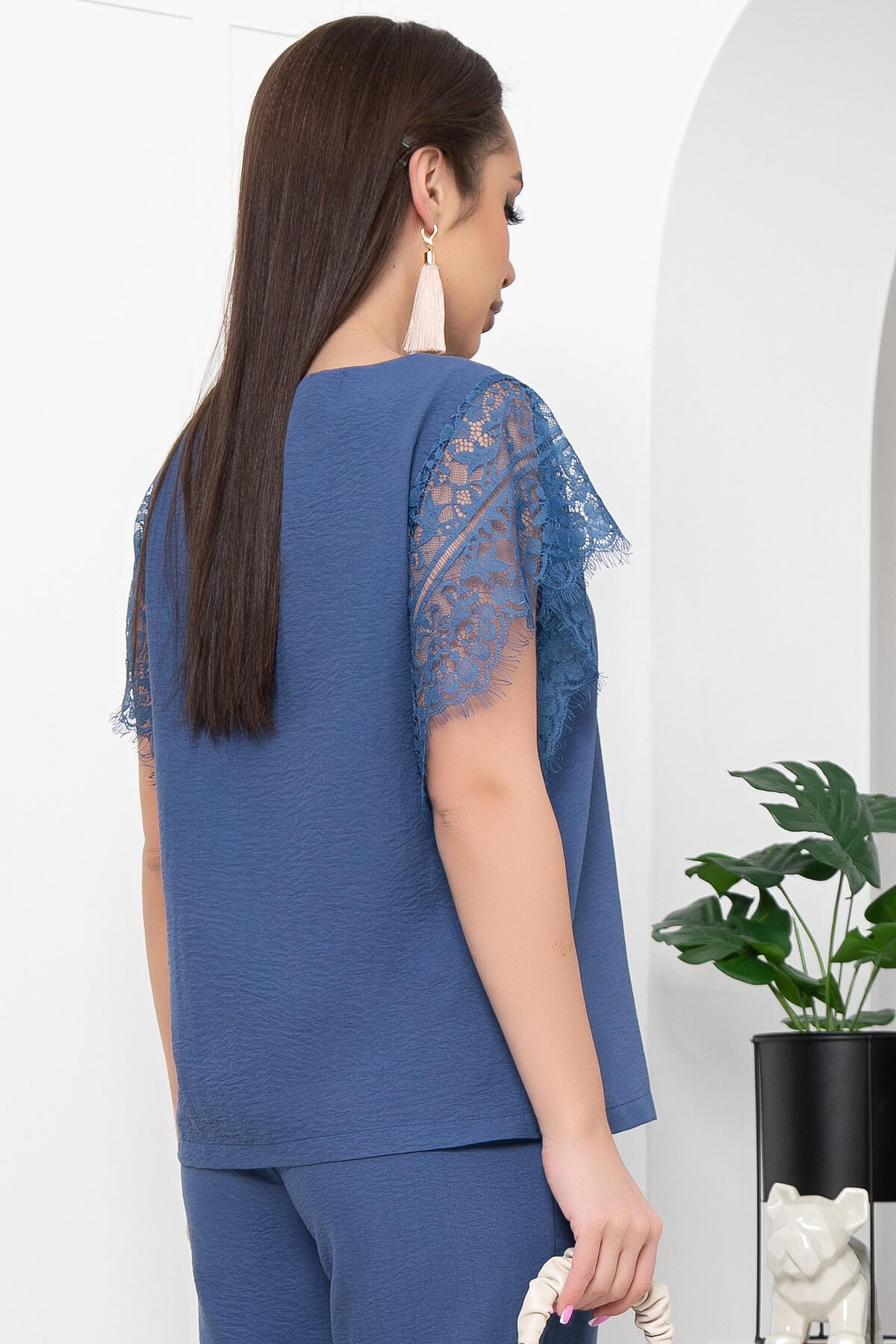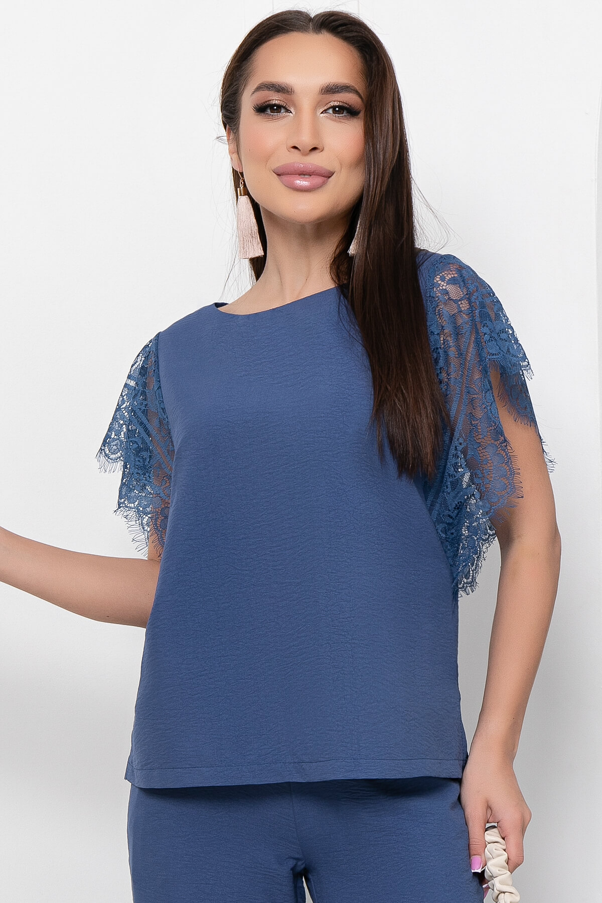 Классическая блуза прямого кроя с рукавами из шикарного кружева создаст праздничное настроение! Такая блузка отлично подходит как для торжественного мероприятия, так и будет отлично смотреться в повседневной жизни. Изделие украшают рукава, скроенные по типу "крылышки" из кружева.