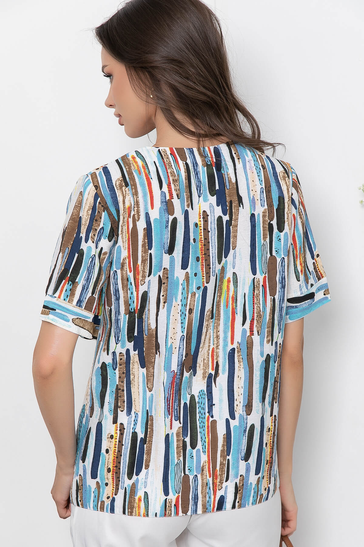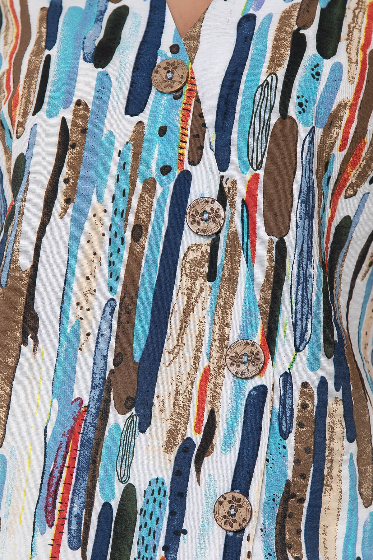 Легкие летние блузы гармонично подойдут на каждый день. Такая блуза будет отлично смотреться с джинсами и кедами. Изделие дополняют акцентные кокосовые пуговицы. Рукав укороченный, втачной.