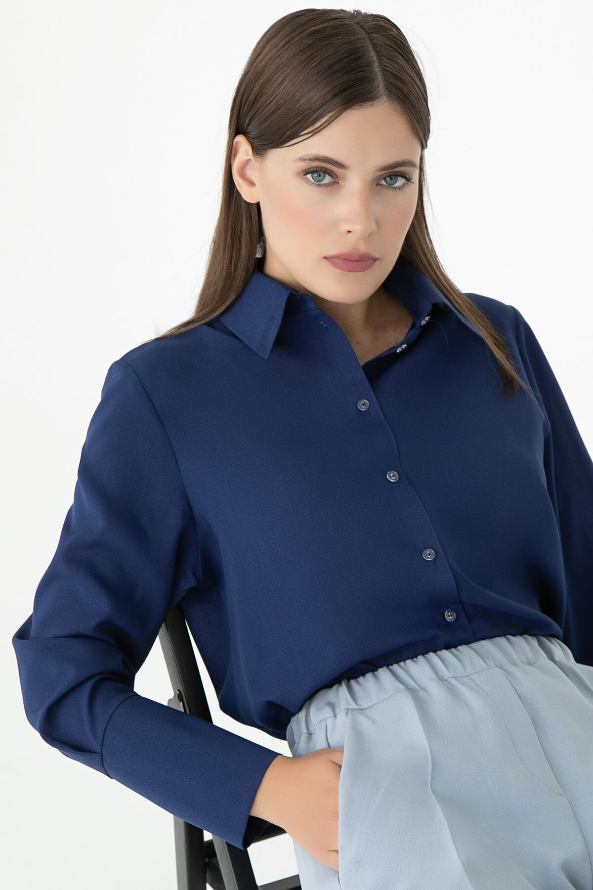 Создайте роскошный образ с невесомой блузой с пышными рукавами и высоким манжетом на пуговицах! Такая женственная вещь становится незаменимой при создании образов деловой леди, нежной дамы и яркой красавицы. Блуза отлично сочетается с прямыми брюками, джинсами и даже юбками!