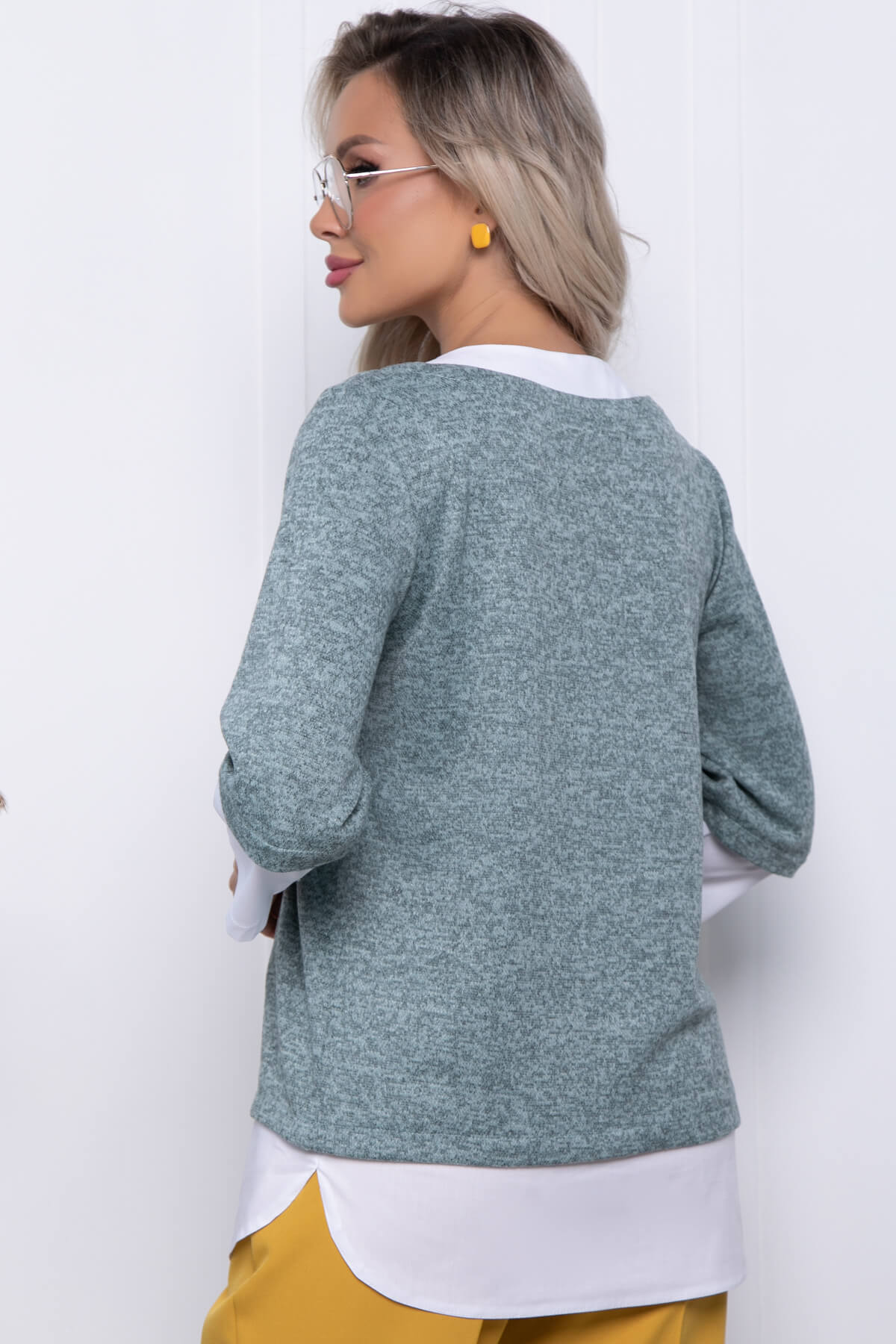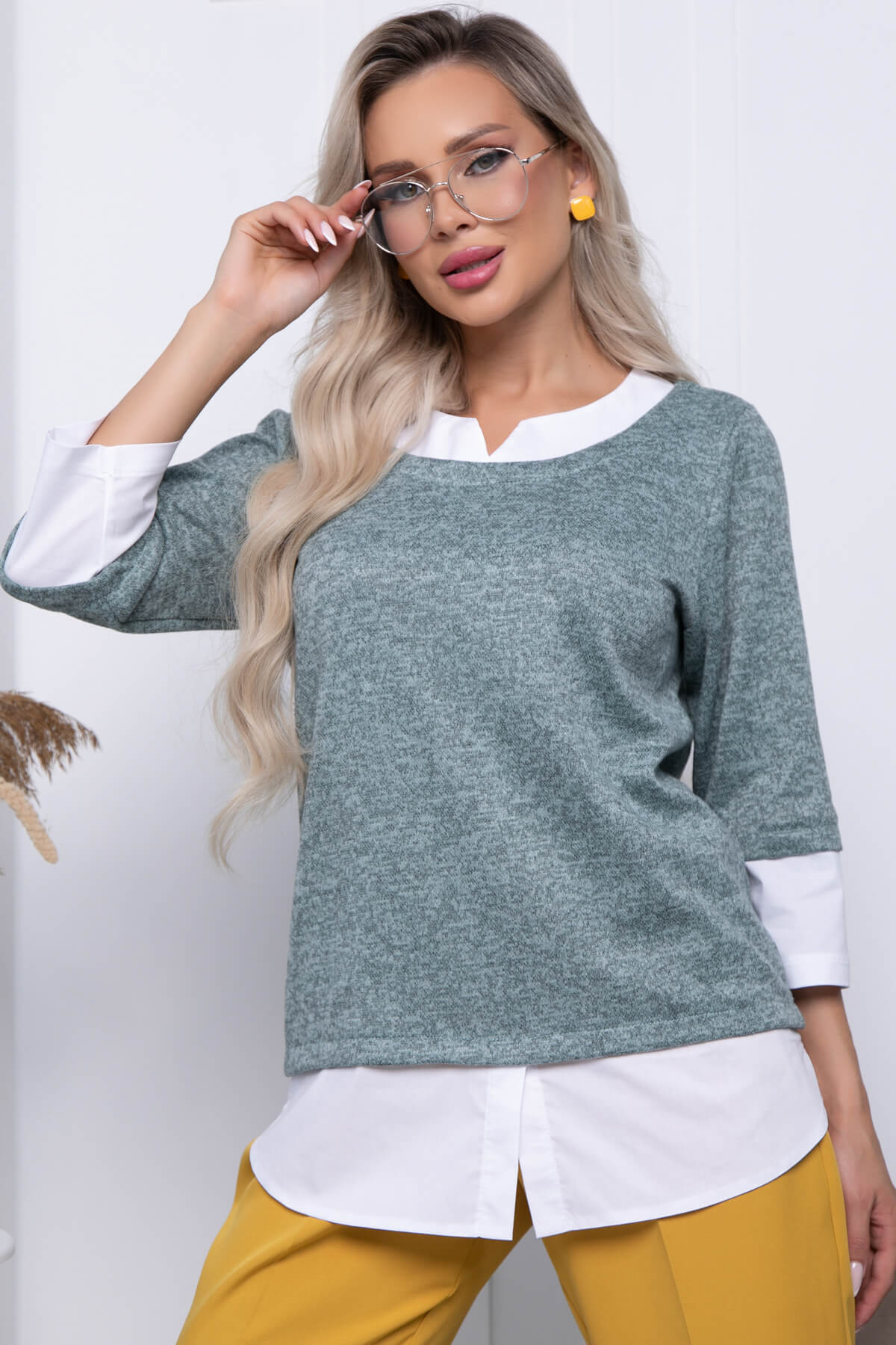 Джемпер из мягкого трикотажа украсит ваш деловой образ и сделает его красивым и комфортным. Сочетание двух видов ткани создаёт эффект многослойного образа.