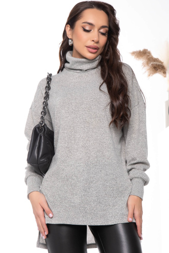 Горловина оформлена воротником "Хомут". По бокам джемпера есть разрезы.