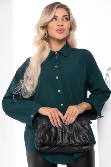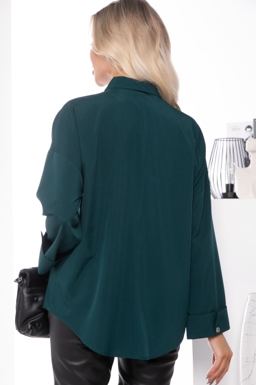 Рубашка в стильном оттенке придаст яркости и эффектности вашему образу. Свободный крой рубашки обеспечивает максимально свободную посадку по фигуре. С такой моделью можно создать и официально-деловой образ, и расслабленный. Рубашка имеет длинный, широкий, втачной рукав. Свободный крой изделия позволит скрыть недостатки фигуры.