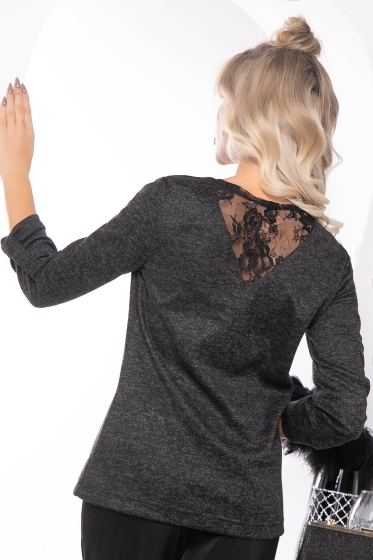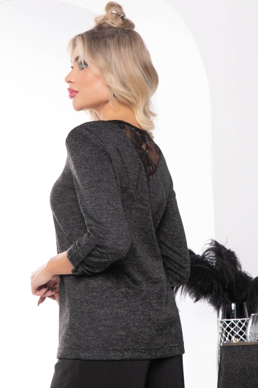 Джемпер из трикотажа считается одним из самых трендовых предметов одежды. Изделие украшает V-образный вырез по спинке, который декорирован кружевом. Рукав втачной, по низу пата на пуговице. Изделие отлично смотрится с брюками и юбками. Оно отлично подходит по любой праздничный вечер и повседневный образ!