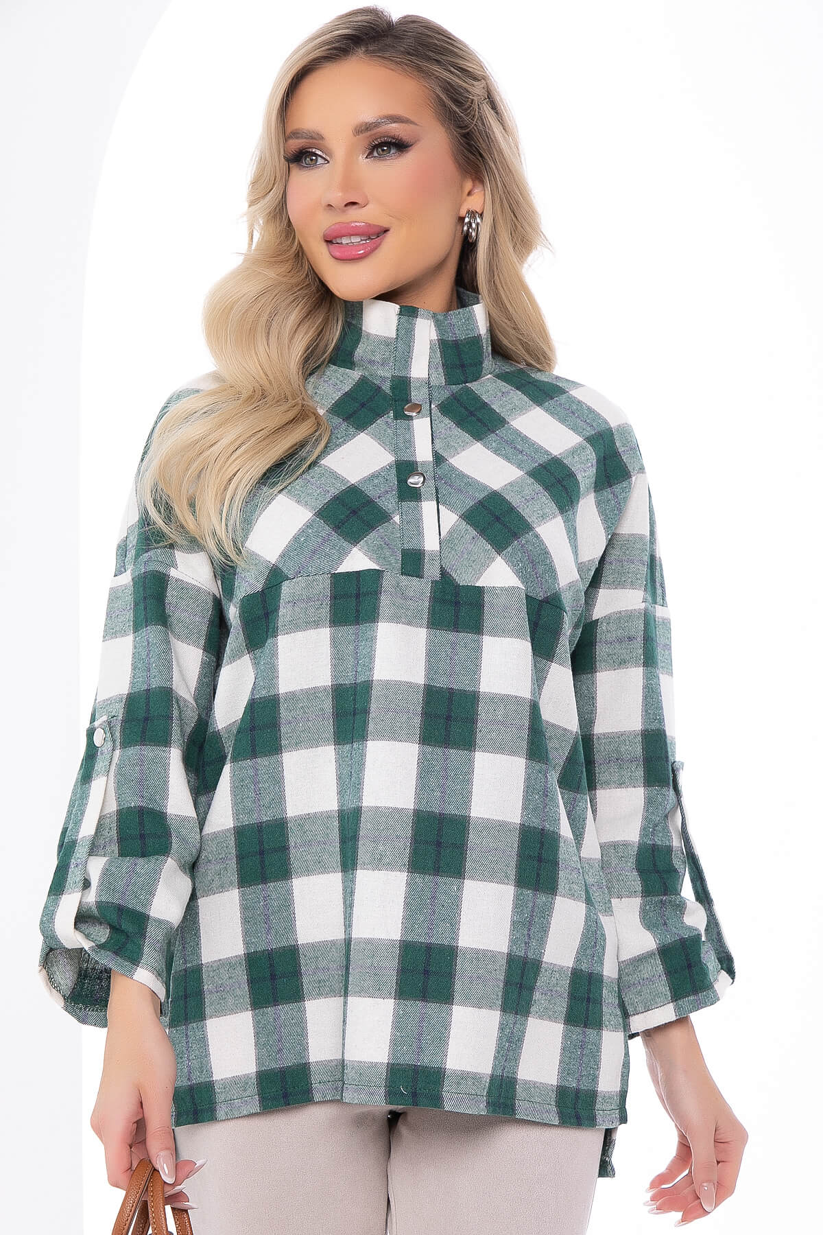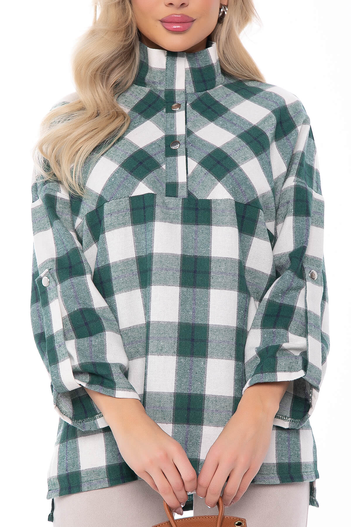 Рубашка в клетку с укороченным рукавом - отличный вариант для повседневного образа. Дополните образ светлыми брюками или любимыми джинсами. Рубашка свободного кроя оснащена воротником стойкой на кнопках. Линия плеча спущена, рукав три четверти. По бокам есть небольшие разрезы, спинка удлинена.