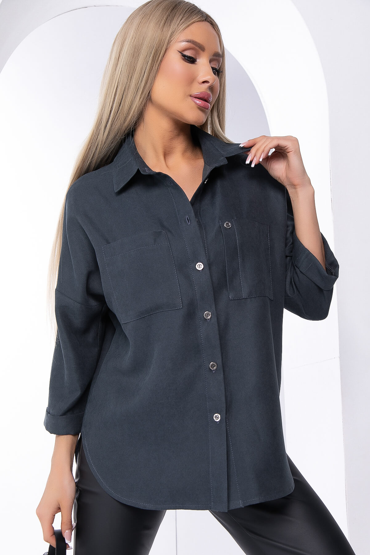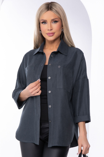 Рубашка из микровельвета в базовом оттенке поможет в создании комфортного тёплого образа. Рубашка полуприлегающего силуэта с рукавом три четверти. По переду застёгивается на пуговицы. На спинке асимметричная кокетка, декорированная пуговицей.Низ изделия закруглен.