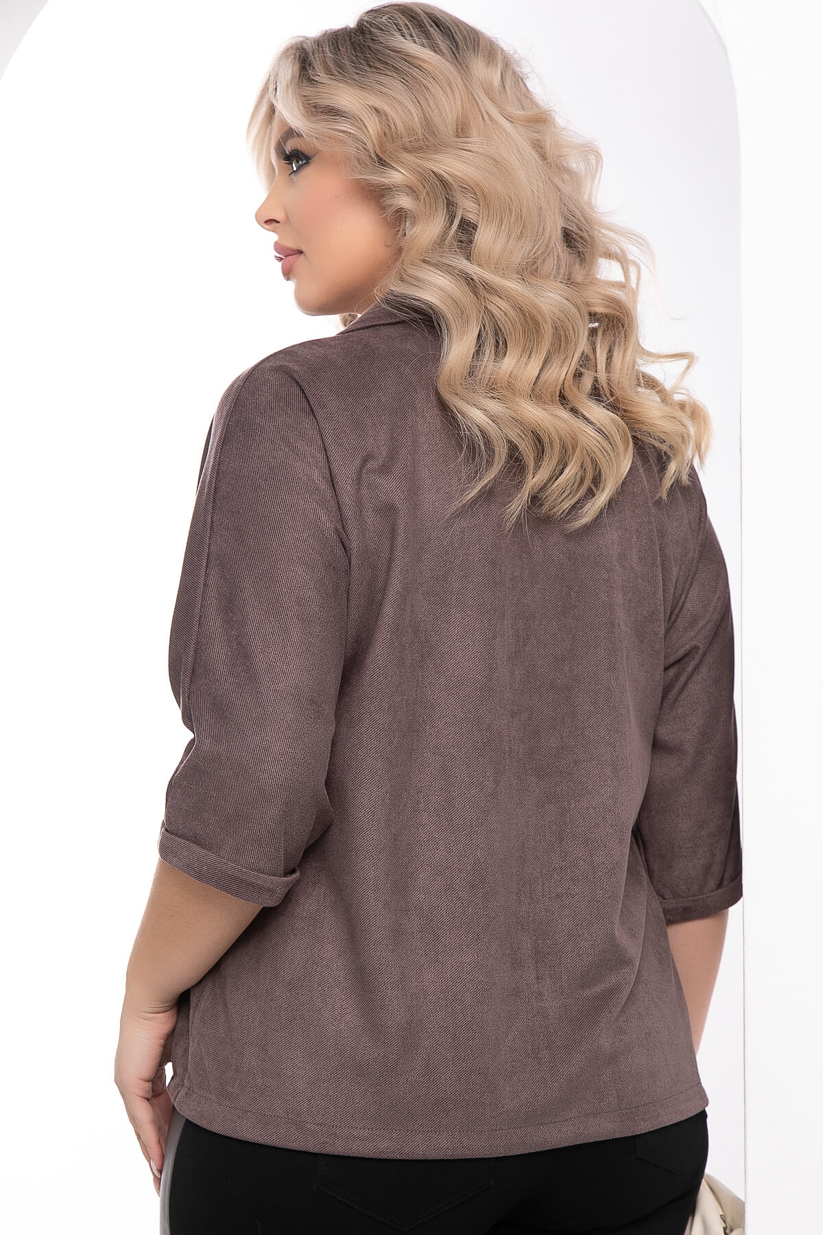 Туника из трикотажа подойдёт для создания повседневных образов. Туника имеет коричневый оттенок, который является универсальным базовым цветом для повседневного и делового гардероба. Рукав цельнокроенный, по низу манжен из основной ткани. Вороник рубашечного типа на стойке. По низу изделия шнурок из основной ткани.