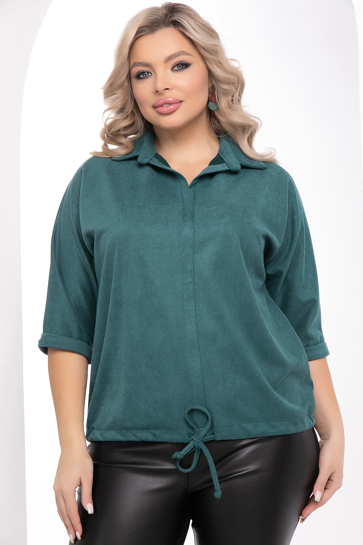 Туника из трикотажа подойдёт для создания повседневных образов. Туника имеет приятный изумрудный оттенок, который является универсальным базовым цветом для повседневного и делового гардероба. Рукав цельнокроенный, по низу манжен из основной ткани. Вороник рубашечного типа на стойке. По низу изделия шнурок из основной ткани.