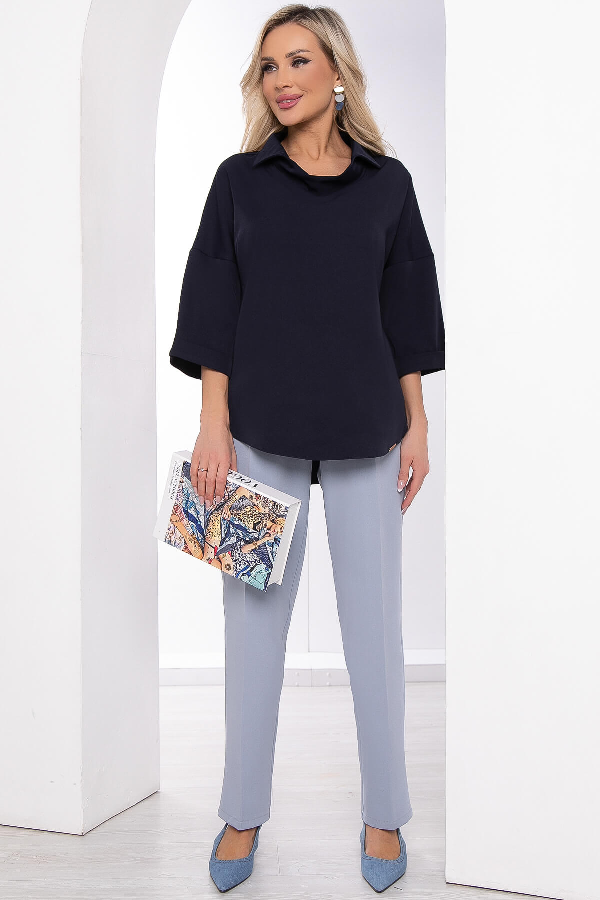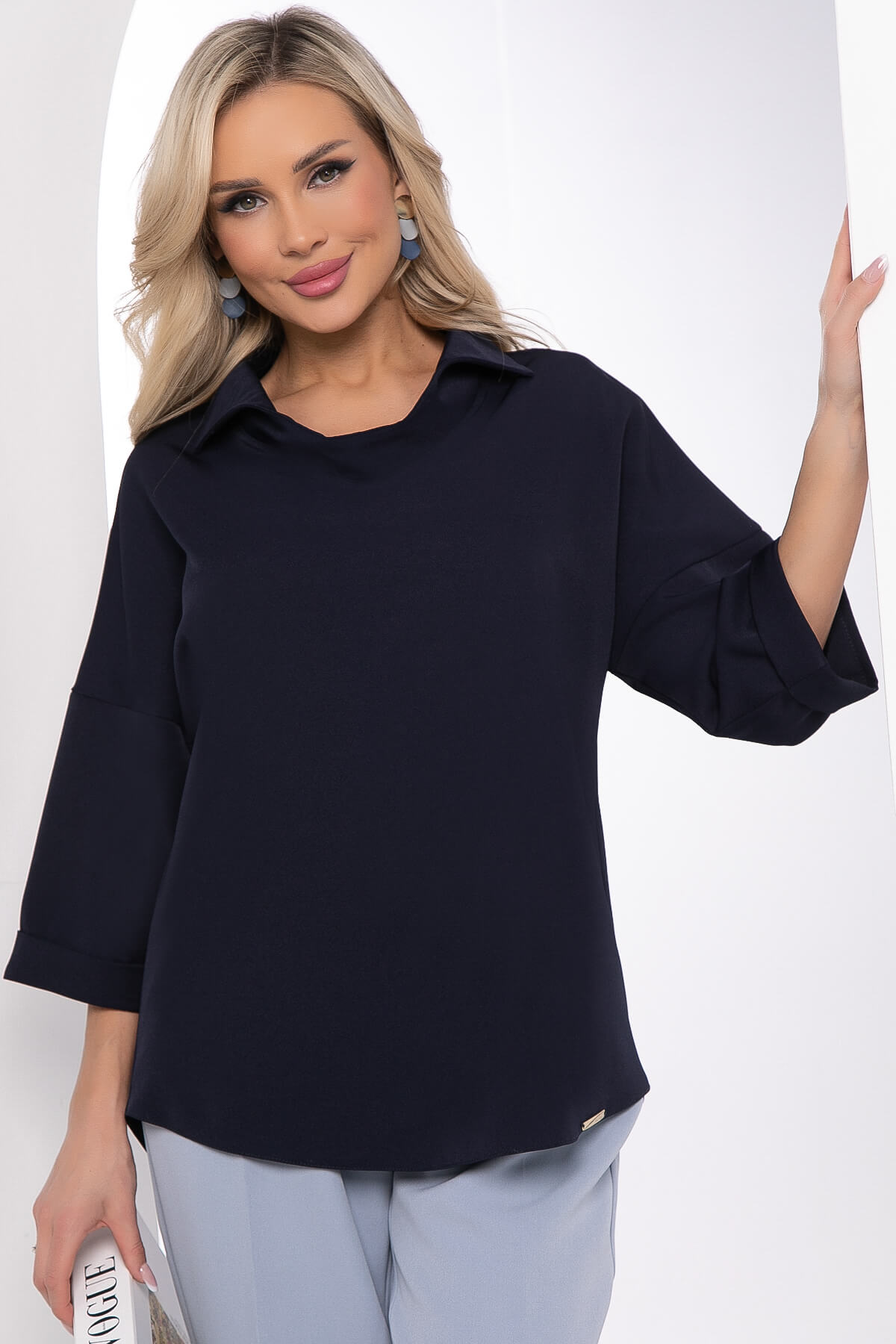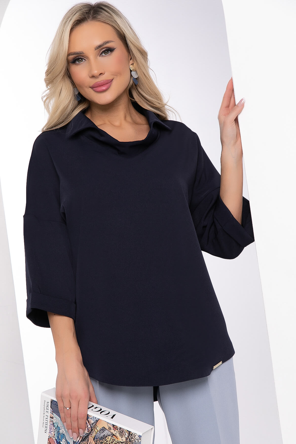 Стильная блуза в свободном крое. Такая модель отлично подойдет на каждый день для женщин, которые выбирают комфорт в течение всего дня. В ней вы будете выглядеть стильно и современно. Блуза свободного кроя с акцентным воротником - стойкой с отложным элементом. Рукав цельнокроенный три четверти.