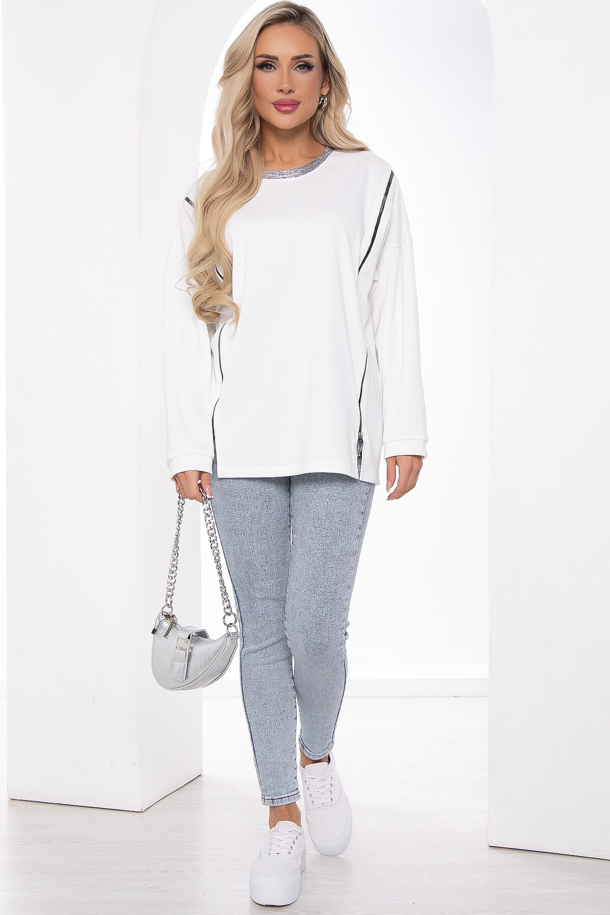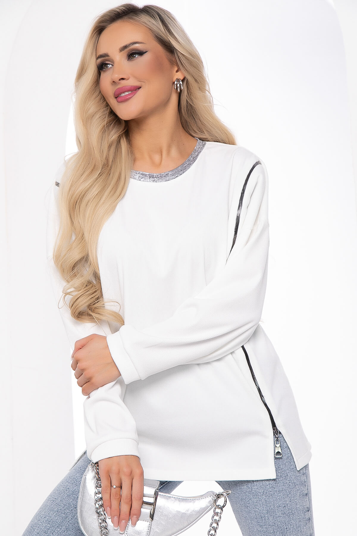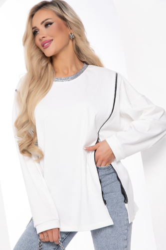 Комфортный и практичный джемпер с функциональными замками по бокам. Округлый вырез акцентирован серебристой горловиной. Длинный рукав со спущенной линией плеча. Такой трикотажный джемпер отлично будет смотреться как с джинсами, так и с брюками. Свободный крой позволит чувствовать себя уютно на прогулке, не сковывая ваших движений.