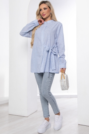 Легкая рубашка с длинным рукавом - это практичный элемент гардероба на каждый день. Такое изделие будет отлично смотреться как с классическими брюками, так и с джинсами. Рубашка свободного кроя. По переду можно скорректировать объем при помощи вшитых завязок из основной ткани.