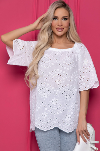 Элегантная легкая блуза с широкой горловиной на резинке, идеально сочетается с брюками и юбками. Подходит для повседневных прогулок или для создания праздничного образа.