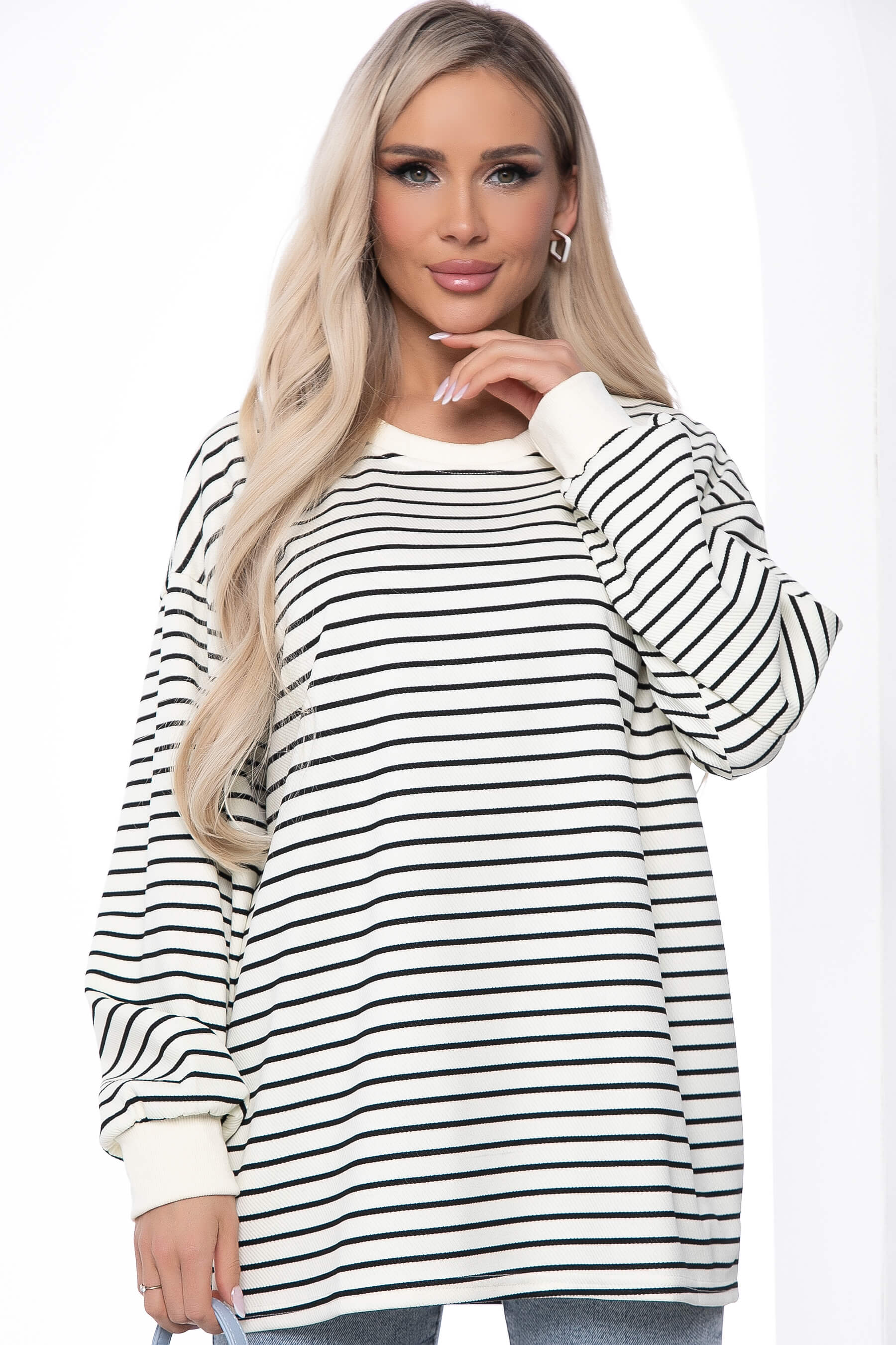 Джемпер в горизонтальную полоску уже не один сезон является основополагающей базой модного гардероба. Его можно носить почти в любых образах, а также использовать в качестве стильного аксессуара, накинув на плечи. Такой джемпер при сочетании с классическими брюками прямого кроя и лодочками или мюлями подойдет для офисного лука, а для повседневной прогулки его можно надеть с джинсами или атласной юбкой миди и с обувью на плоском ходу.