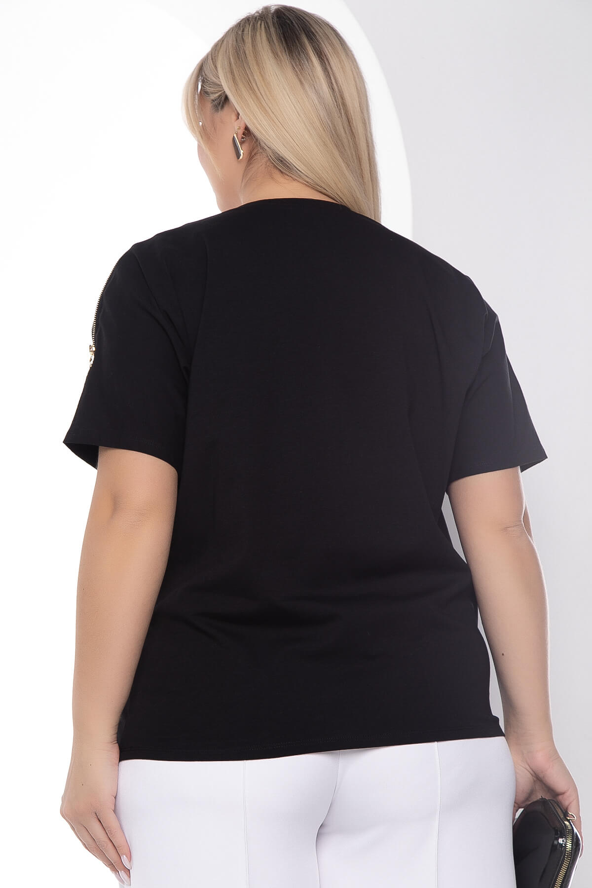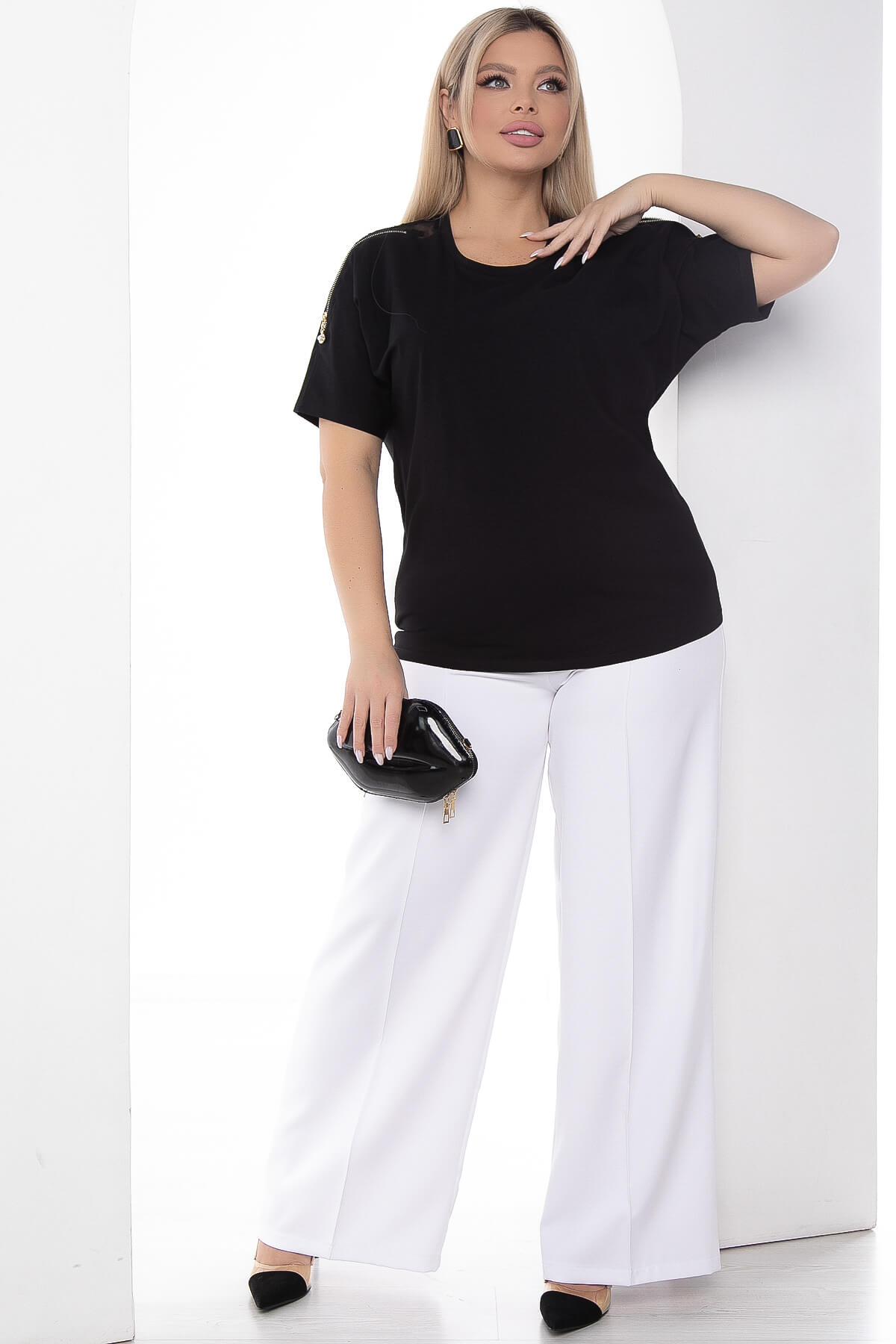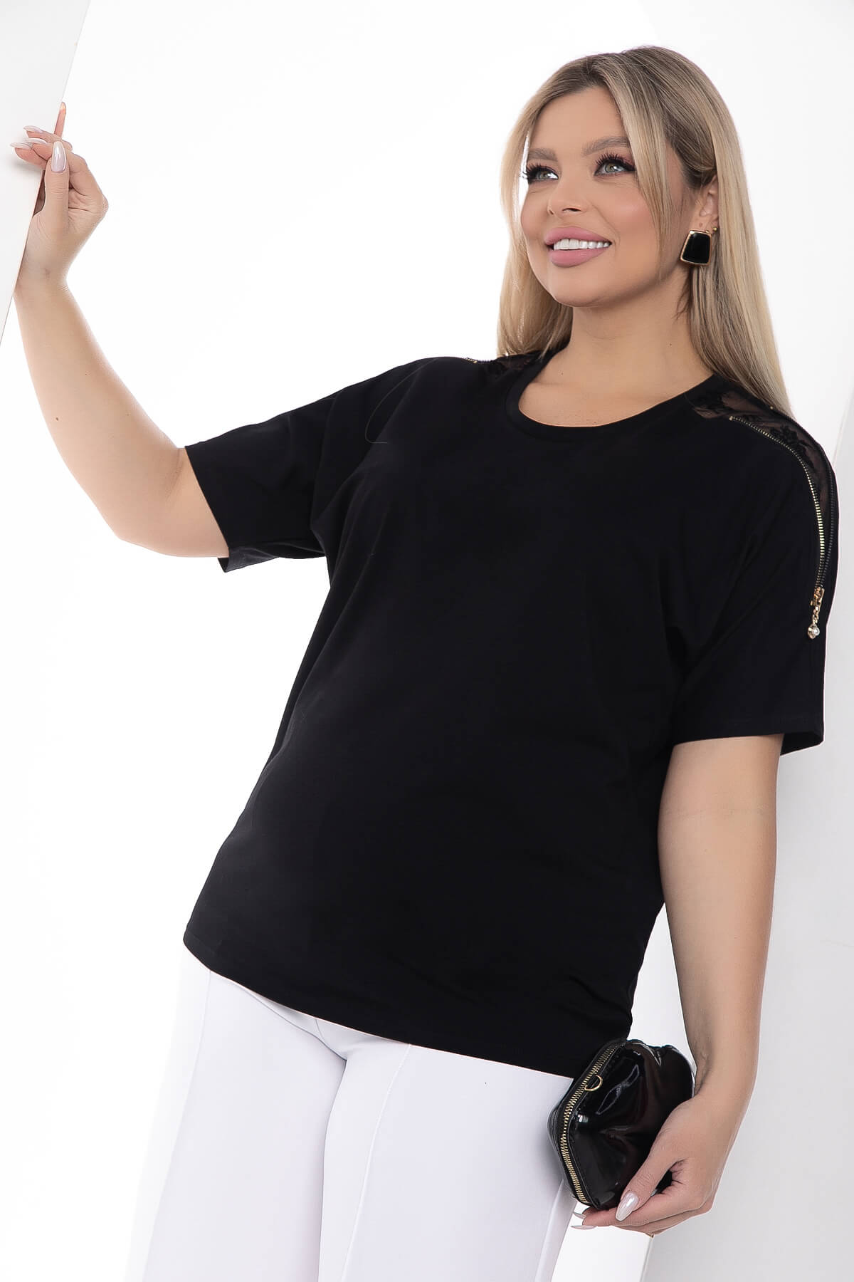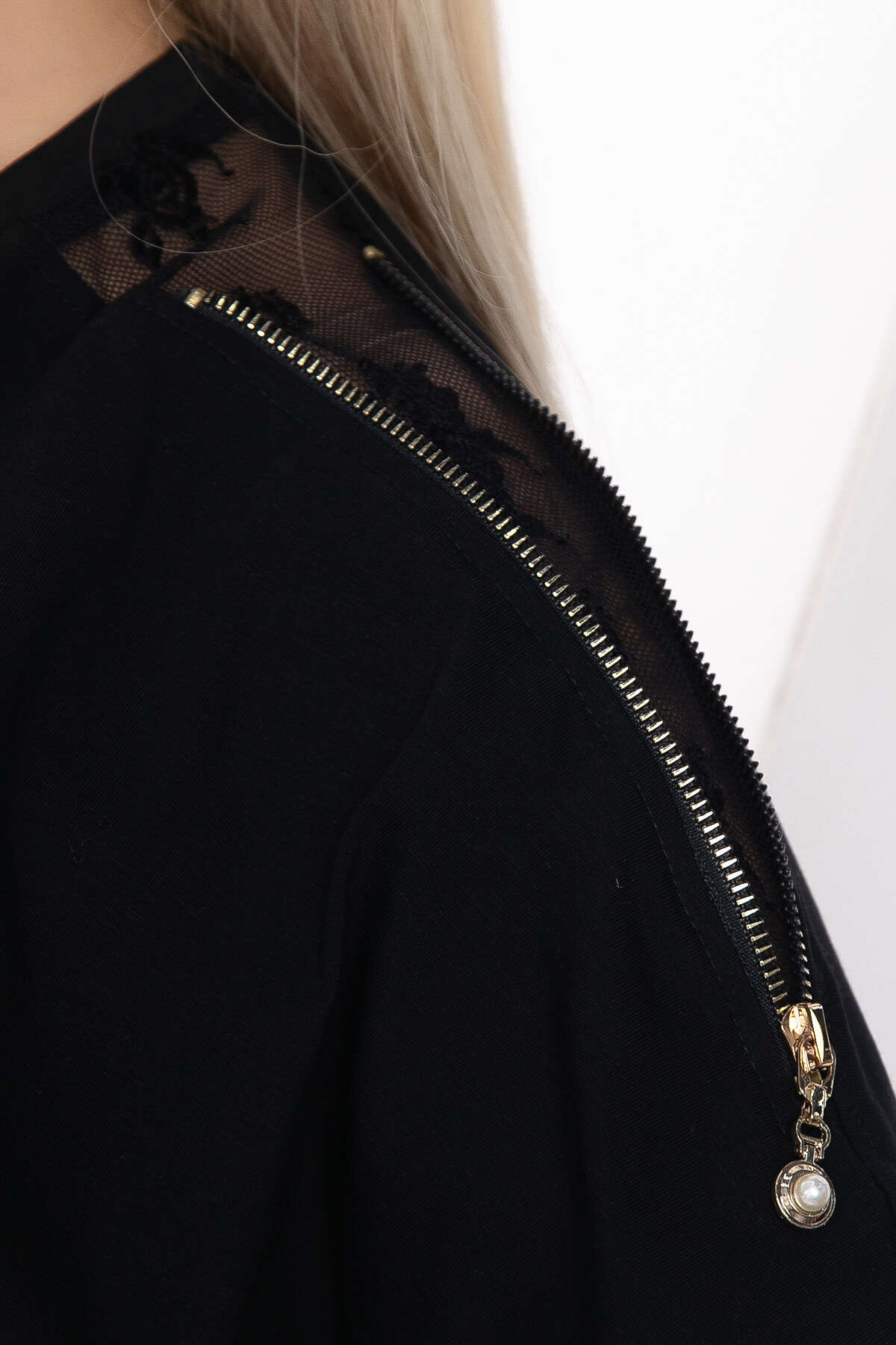 Блуза гармонично сочетается с любым низом: джинсами, брюками и юбками разного фасона. Она подходит для повседневных выходов, свиданий и торжественных мероприятий. На плечах присутствует гипюровая вставка с декоративными замками.