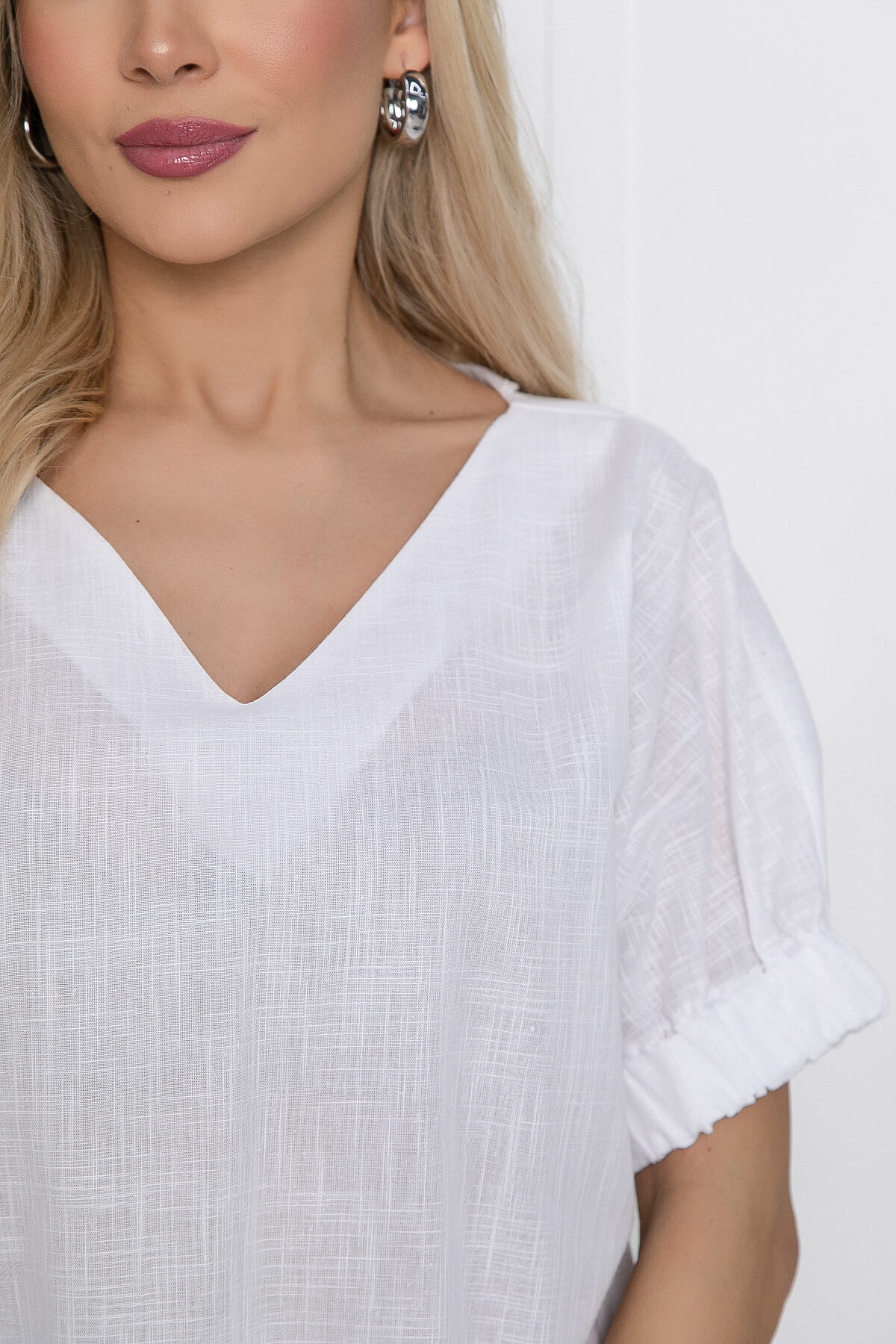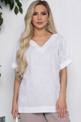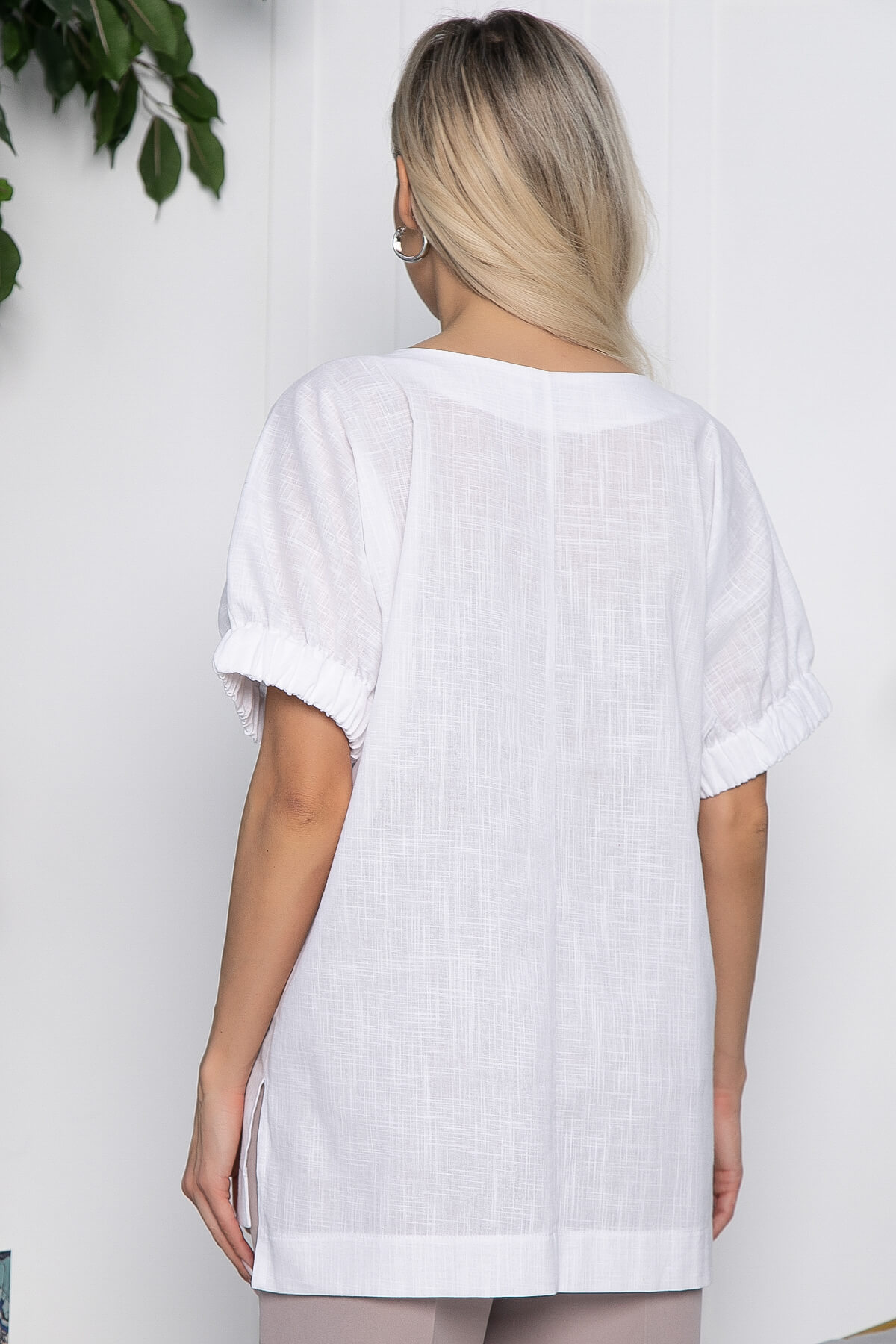 Блуза объёмная свободного силуэта. Рукава цельнокроеные, по низу на резинке. Блуза с разрезами по бокам. Спинка длиннее переда.