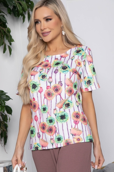Яркая блузка прилегающего кроя с насыщенным флористическим принтом. Прекрасно подойдет под однотонные джинсы, брюки или шорты. Дополните образ летней обувью и вы готовы к отличному дню!
