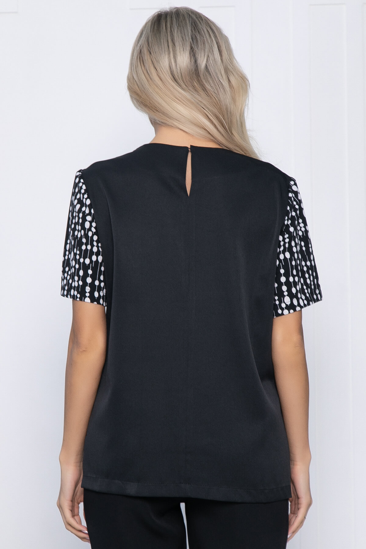 Блузка с коротким рукавом станет отличным вариантом, как на каждый день, так и для делового образа! Украшением данной модели является принт спереди по верхней части и на рукавах. Такой принт придаст образу женственности и утонченности.