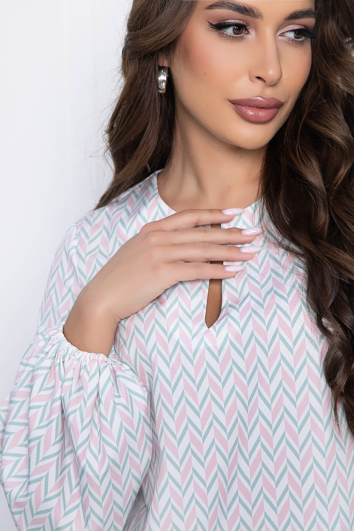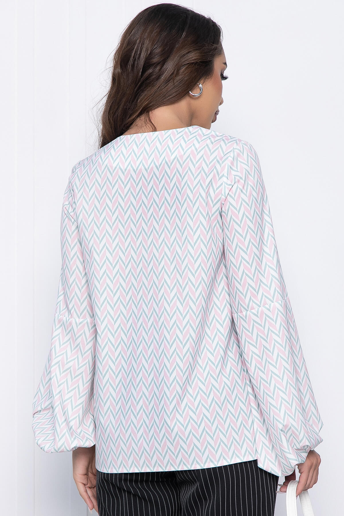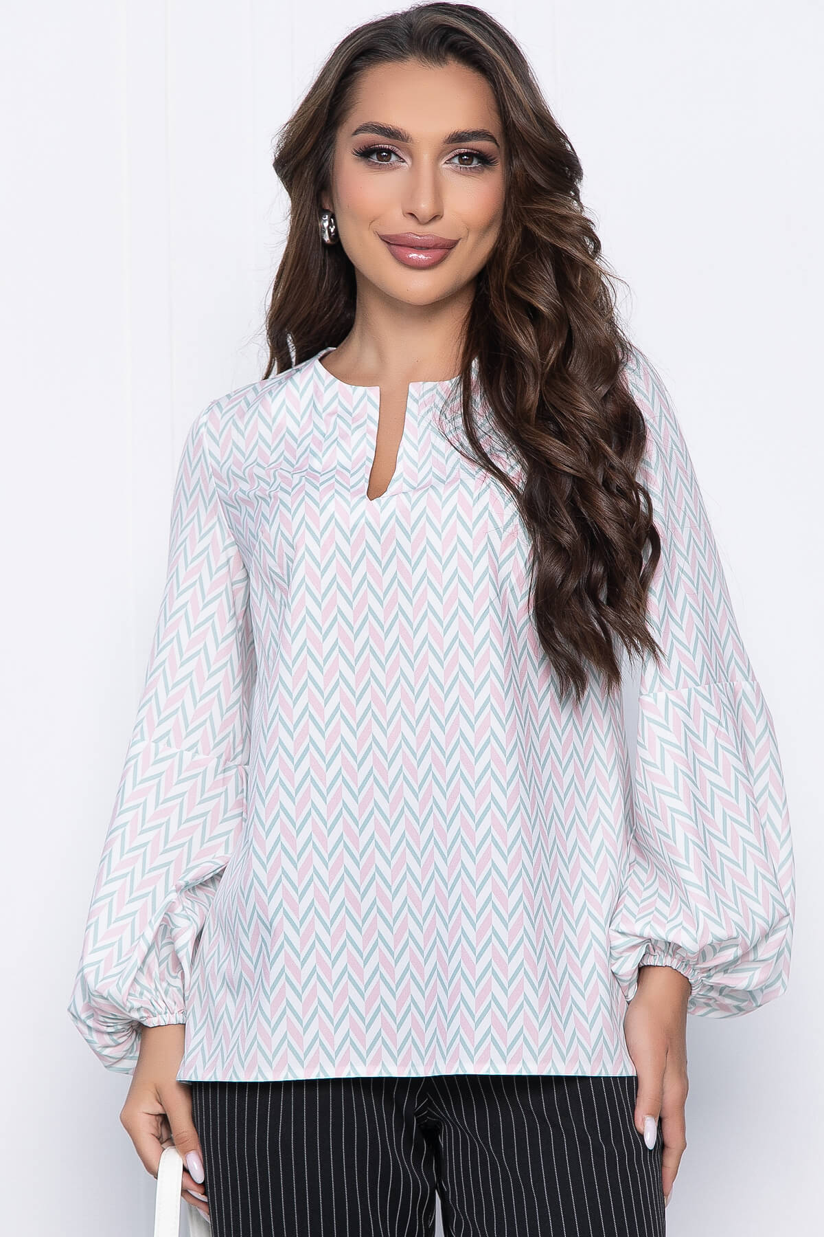 Блузка с геометрическим принтом - прекрасный выбор для стильных офисных образов! Отлично сочетается с юбками и брюками. Свободный крой позволяет с лёгкостью скрыть недостатки фигуры. Низ рукавов на резинке.