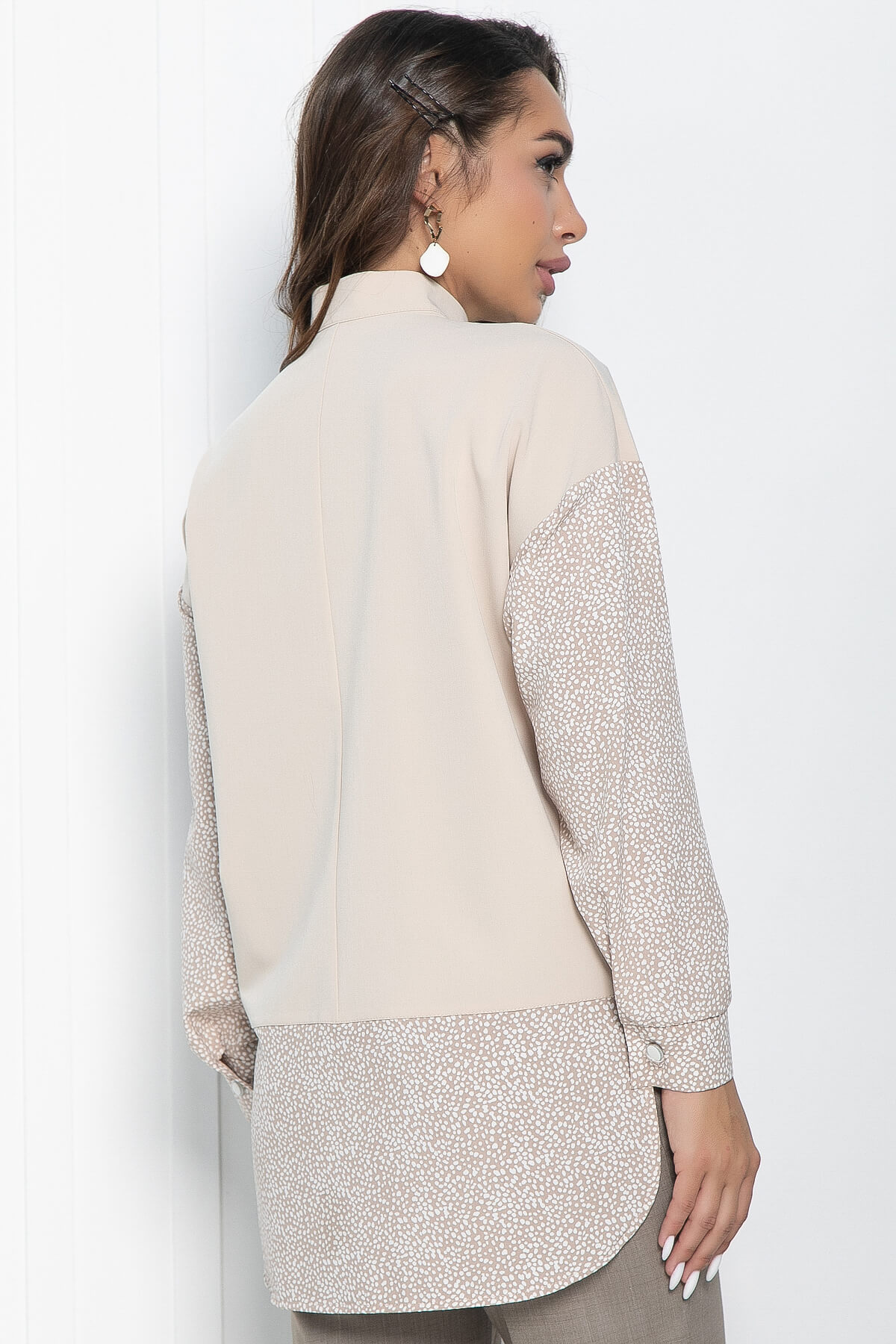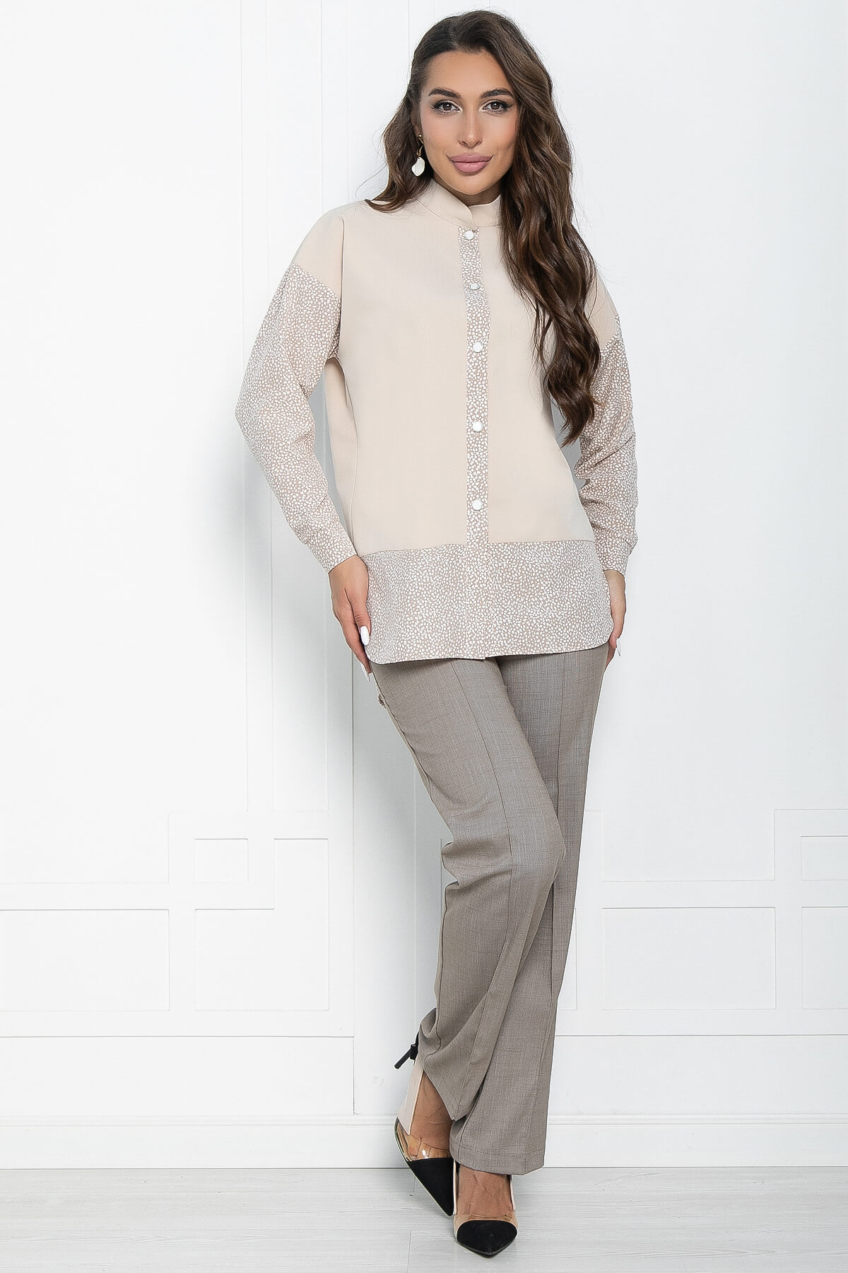 Бежевая блузка — идеальный выбор для тех, кто ценит универсальность и элегантность. Она прекрасно подойдет как для офисной обстановки, так и для торжественных мероприятий. Свободный крою обеспечивает комфорт и свободу движений на протяжении всего дня. Эта нарядная кофточка станет незаменимой частью вашего гардероба, позволяя легко создавать разнообразные образы и выглядеть великолепно в любой ситуации. Планка, рукава и нижняя часть рубашки из ткани компаньона. Перед и спинка разной длины, есть разрезы по боковым швам.