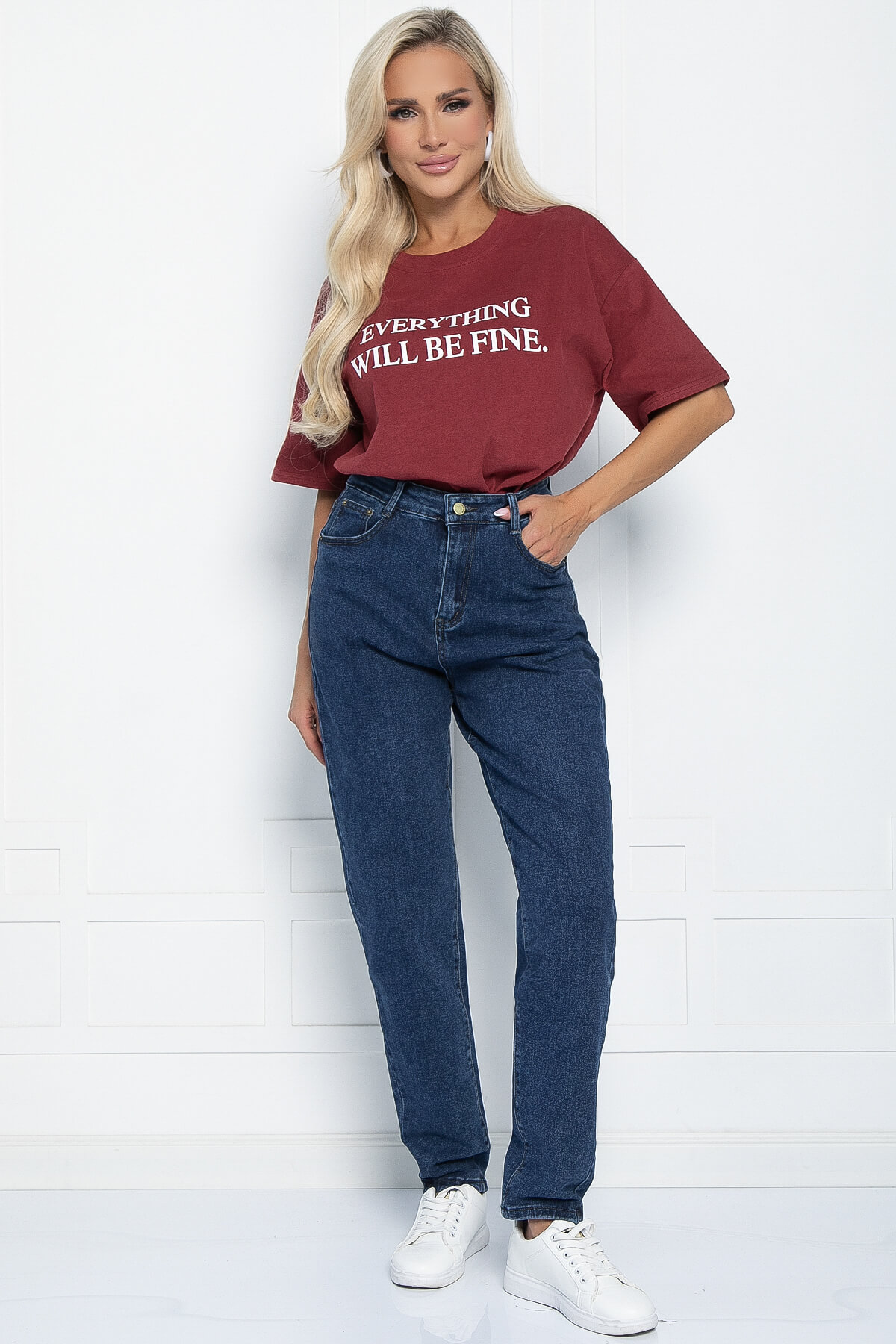 Футболка выполнена из плотного хлопка, что делает её идеальной для весенне-осеннего сезона. Благодаря свободному крою и спущенной линии плеча, эта футболка обеспечивает максимальный комфорт и удобство. Вы можете носить её как навыпуск, так и заправлять в брюки или юбку.