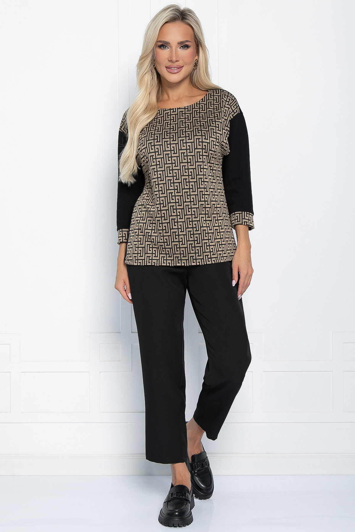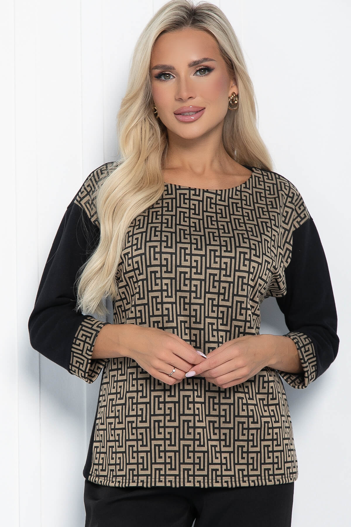 Блуза Греческие мотивы (черно-бежевая) Б11291