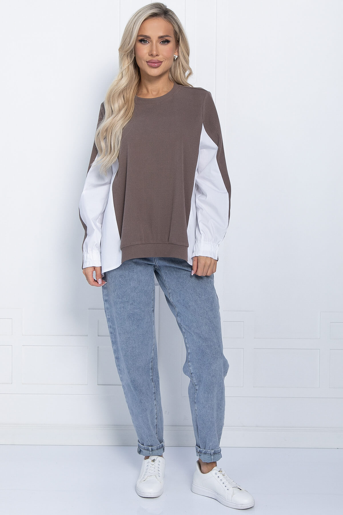 Джемпер Адина (бело-коричневый) Б11383