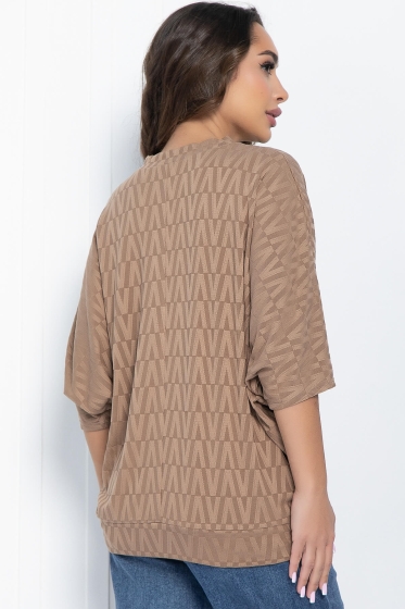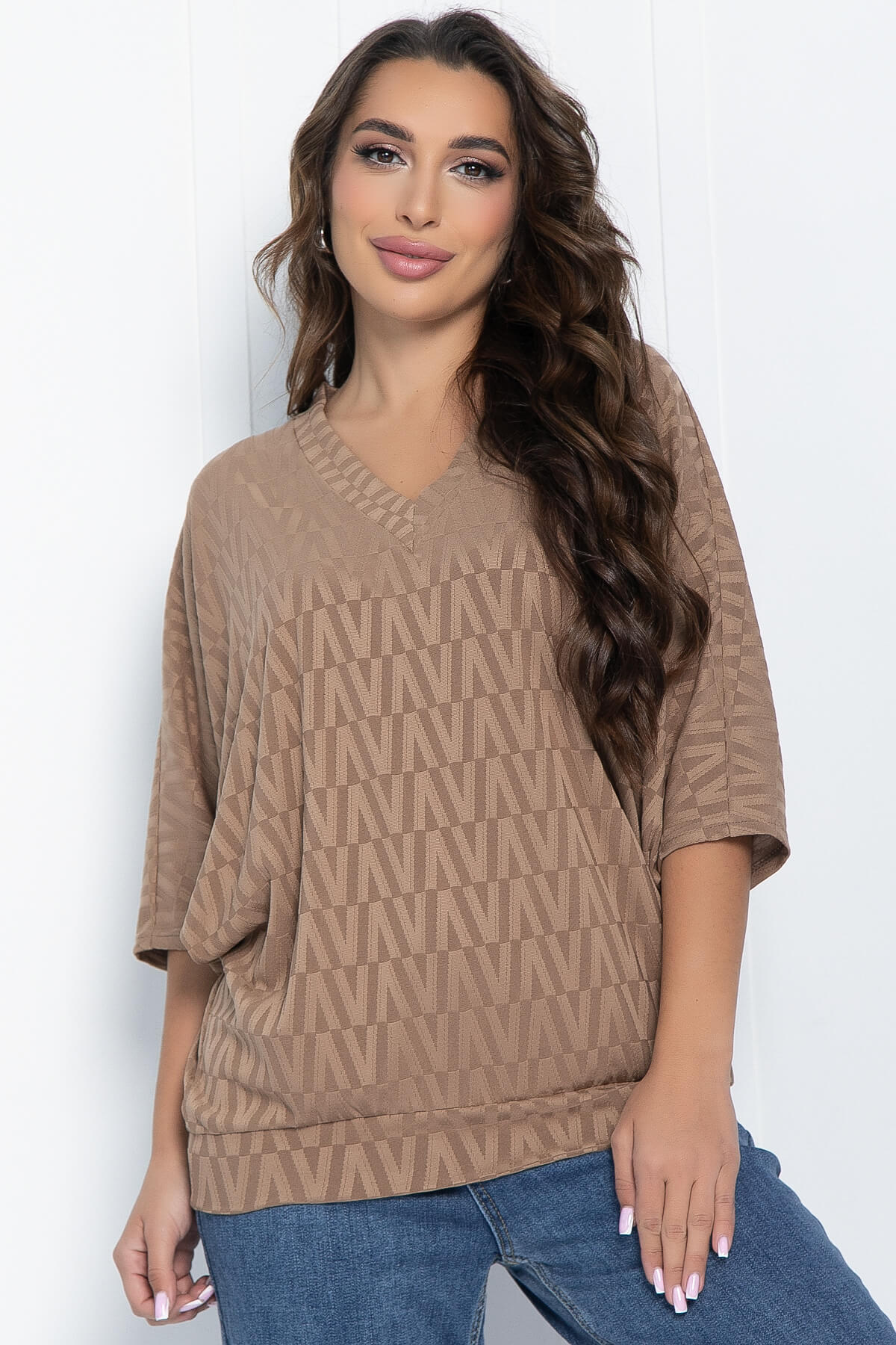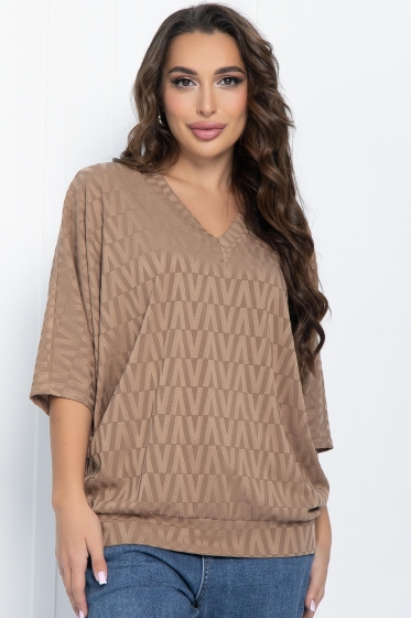 Блуза имеет интересный дизайн с V-образным вырезом горловины и удобным цельнокроеным рукавом «летучая мышь» длины ¾ . Важное преимущество такого рукава заключается в его способности скрывать различные погрешности фигуры. Обладая женственной привлекательностью, подойдет к классической офисной и к деловой повседневной одежде.