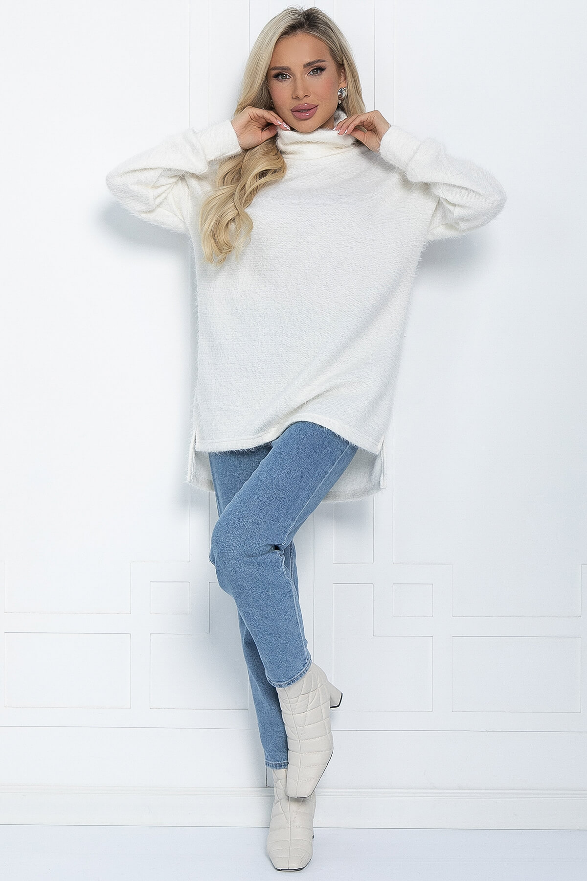 Осенью и зимой, когда на улице прохладно, свободная водолазка с высоким воротом станет незаменимым элементом женского гардероба. Этот универсальный и стильный предмет одежды не только согреет вас, но и дополнит любой образ. Она отлично сочетается с леггинсами, джинсами и брюками. Перед водолазки короче спинки, а рукава спущенные.