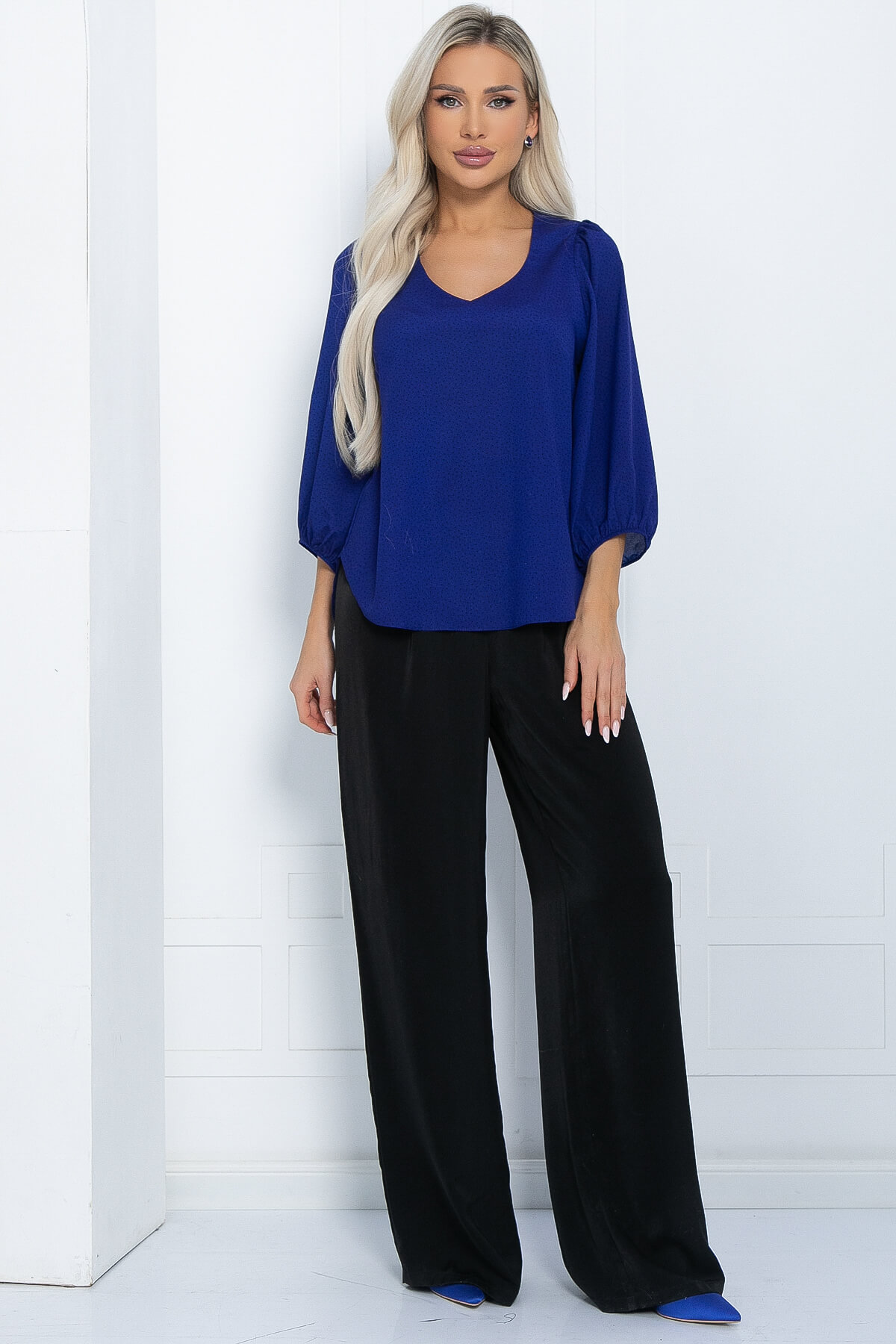 Роскошная блуза - это неотъемлемая часть гардероба, которая подходит для любого случая. Она отлично будет смотреться в повседневном образе жизни и разнообразит внешний вид на торжественном мероприятии. Мягкий V-образный вырез горловины красиво подчеркнёт зону декольте. Низ блузы закруглён, окантован, спинка удлинена. Рукав втачной, три четверти, по низу на резинке.