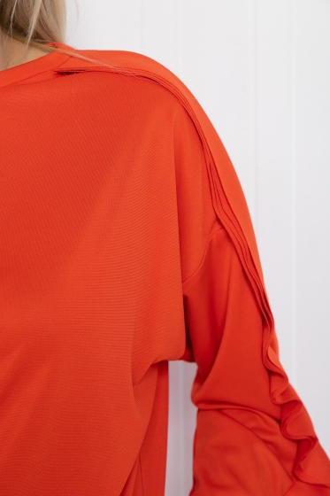 Стильный и выразительный джемпер — это то, что нужно для вашего гардероба. Он добавит изюминку в ваш образ и сделает его неповторимым. Этот универсальный джемпер без лишних деталей, таких как принты, надписи или вышивка, подойдёт к любому стилю. Особенность модели — воланы по всей длине рукавов. Они придают джемперу игривость и оригинальность.