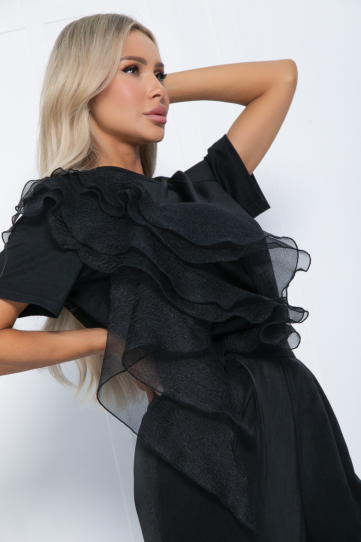 Рост модели: 168 см.Блузка с воланами из органзы — это настоящая находка для вашего гардероба! Она станет ярким акцентом как на торжественных мероприятиях, так и для повседневных прогулок. Воланы придают образу лёгкость и романтичность. С этой блузкой вы сможете создать стильный и запоминающийся образ!