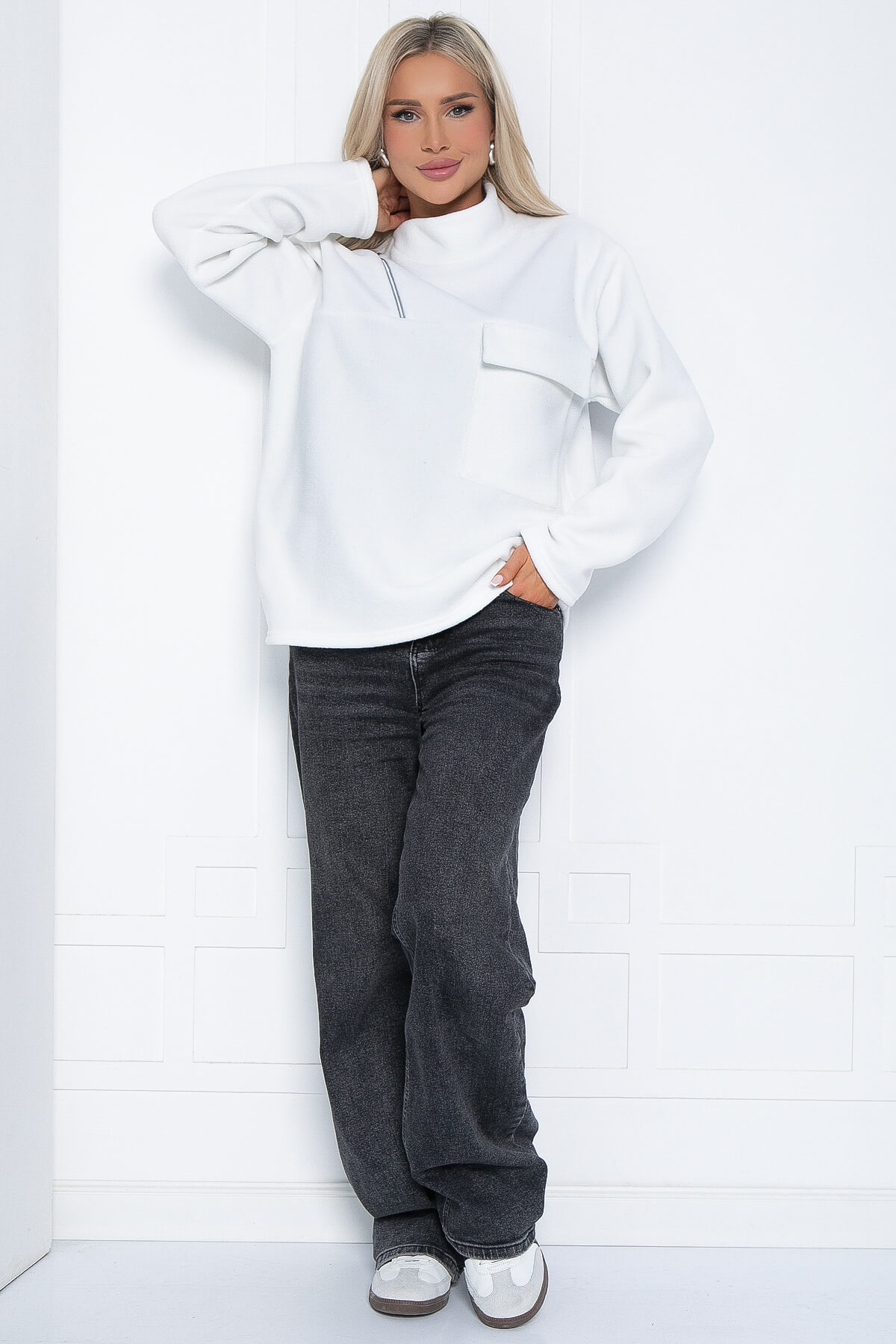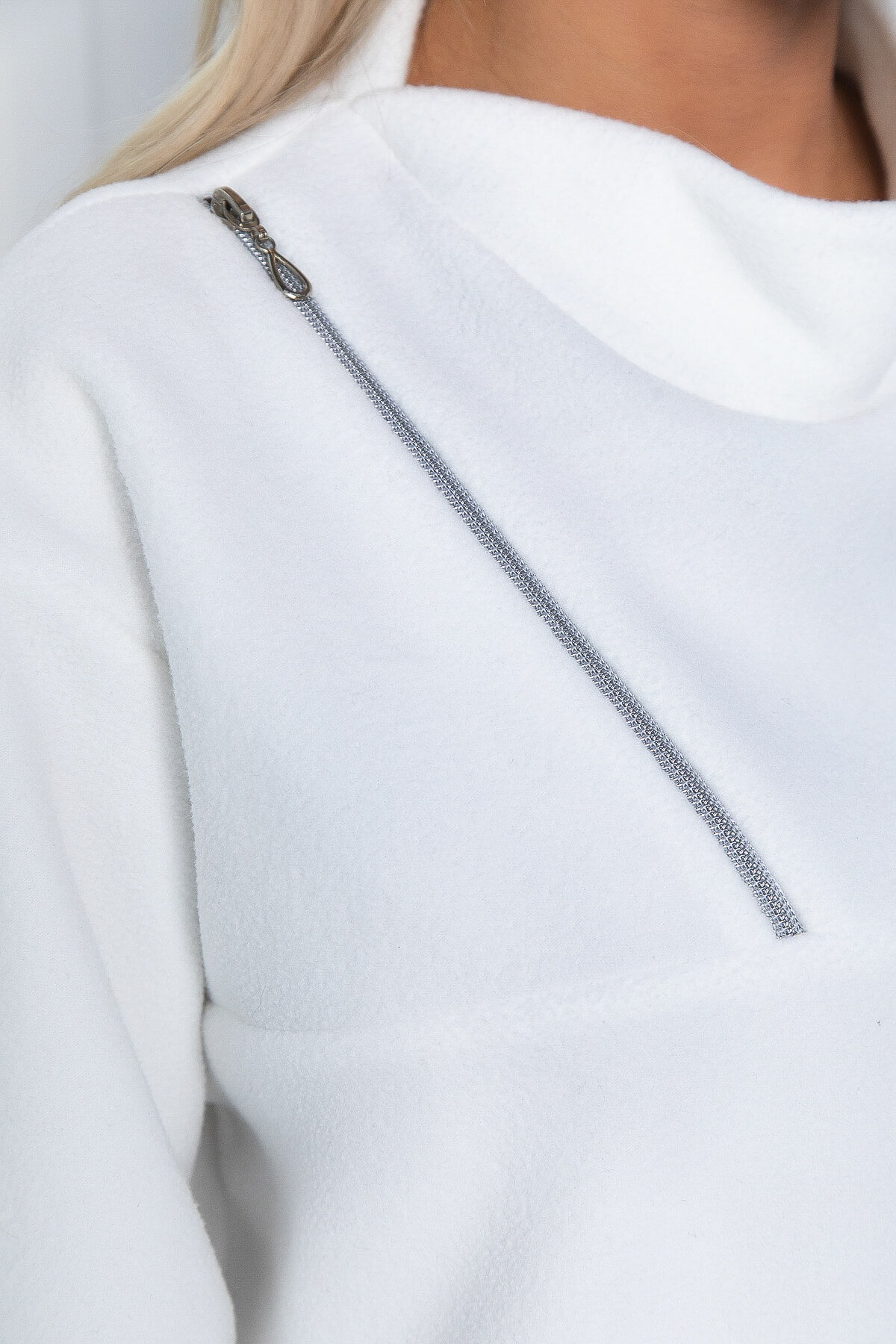 Рост модели: 168 см.Сочетание стиля и удобства в одном изделии! Этот свитшот выполнен из мягких и приятных на ощупь материалов, что делает его идеальным выбором для прохладных дней. Декоративная молния на передней части придаёт образу неповторимость и оригинальность. Свитшот легко сочетается с другими вещами, что делает его универсальным элементом гардероба.
