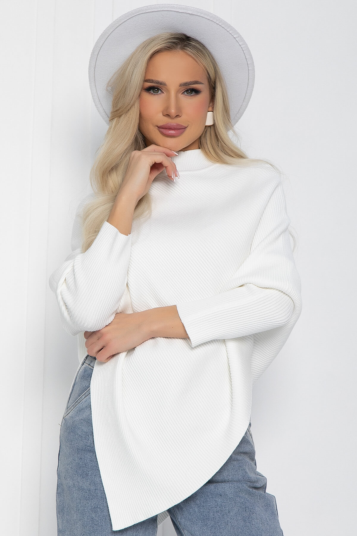 Джемпер, выполненный в стиле пончо, станет прекрасным выбором для любого сезона. Его асимметричный крой и элегантный силуэт не оставят вас незамеченной. Рукава, скроенные по типу «летучая мышь», придадут вашему образу легкость и воздушность, что делает эту модель привлекательной. Такой джемпер отлично подойдет как для офисных будней, так и для повседневной жизни.