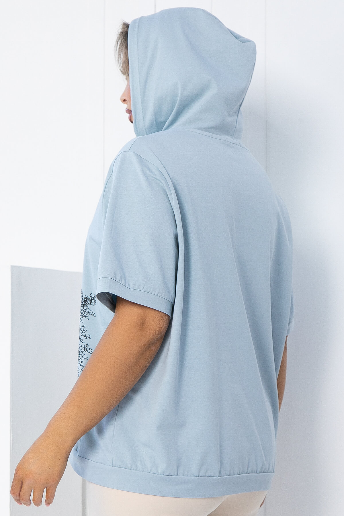 Блуза с капюшоном — это универсальный выбор как для городских прогулок, так и для активного отдыха на природе. Капюшон надежно защищает от ветра и придает образу спортивный акцент, а завязки позволяют регулировать его объем, что делает образ индивидуальным и неповторимым.