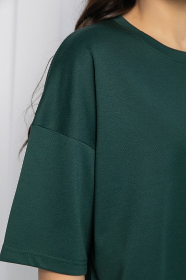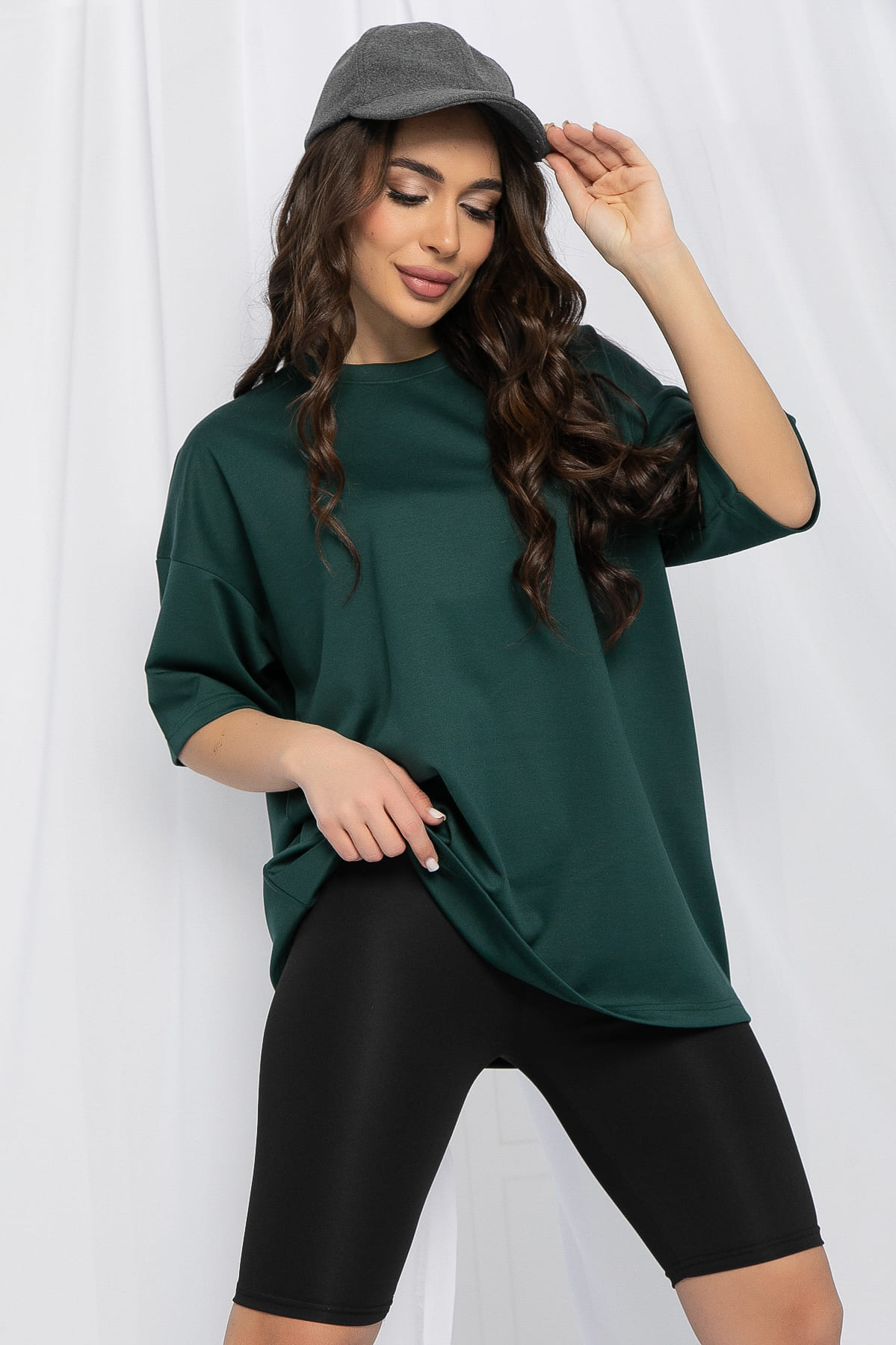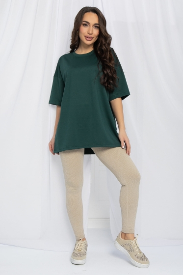 Наша футболка в красивом зелёном оттенке — это отличный вариант для активного отдыха, повседневной носки и домашнего гардероба! Благодаря свободному крою, она подходит для любой фигуры, обеспечивая свободу движений и создавая стильный образ. Вы можете сочетать эту футболку с различными предметами гардероба: джинсами, леггинсами, брюками и велосипедками.
