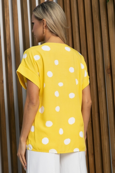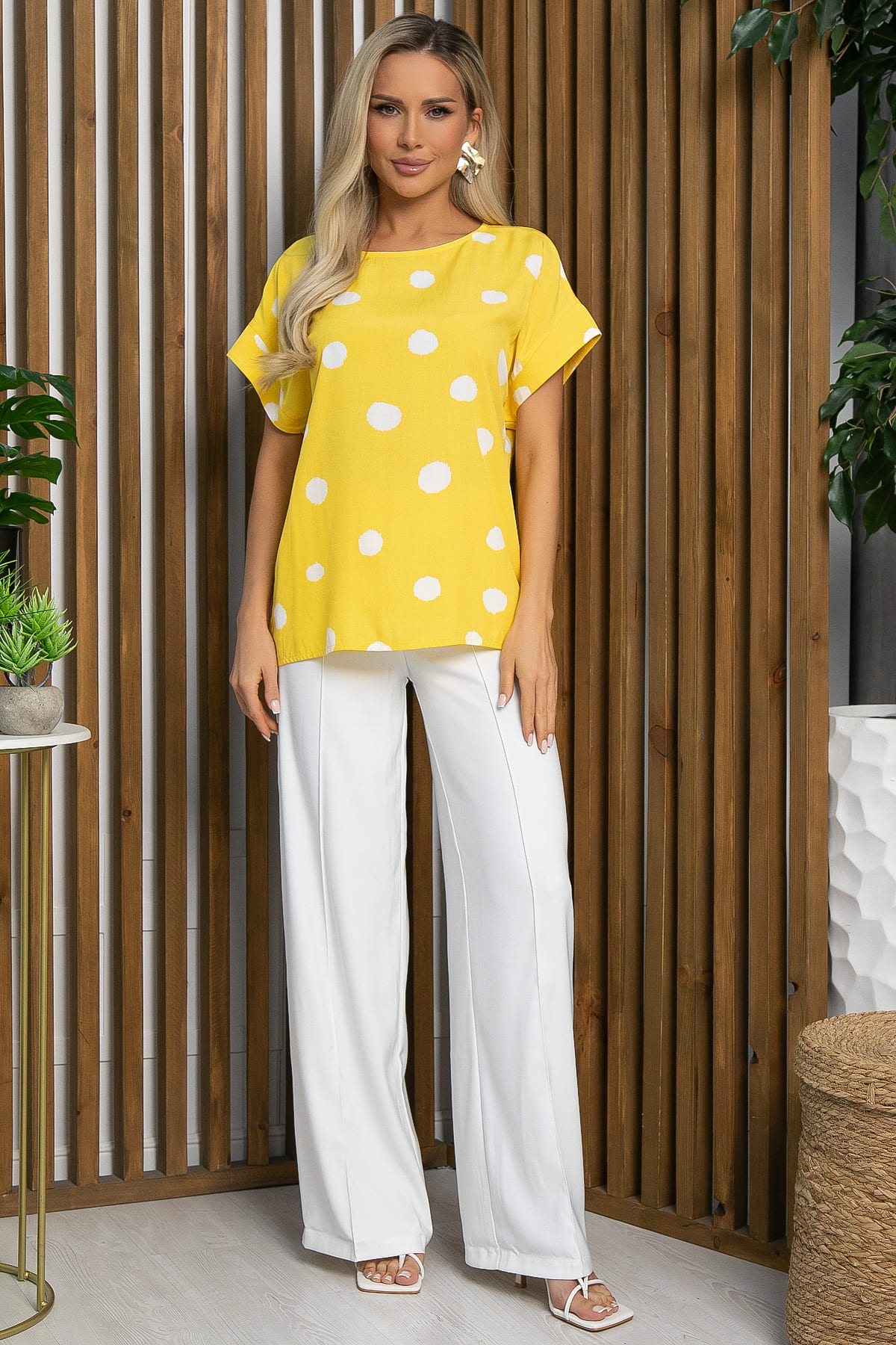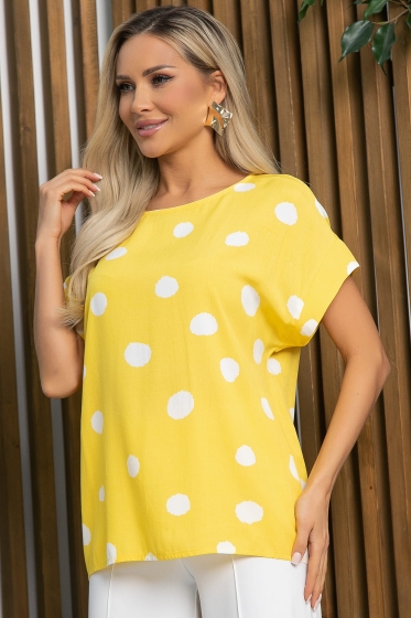 Футболка с принтом в горошек — это must-have для любого современного гардероба! Она идеально подходит для создания повседневных образов и легко комбинируется с самыми разнообразными вещами, позволяя создавать стильные ансамбли. Эта футболка обладает свободным кроем, спущенными плечами и манжетами, что придаёт ей непринуждённый вид.
