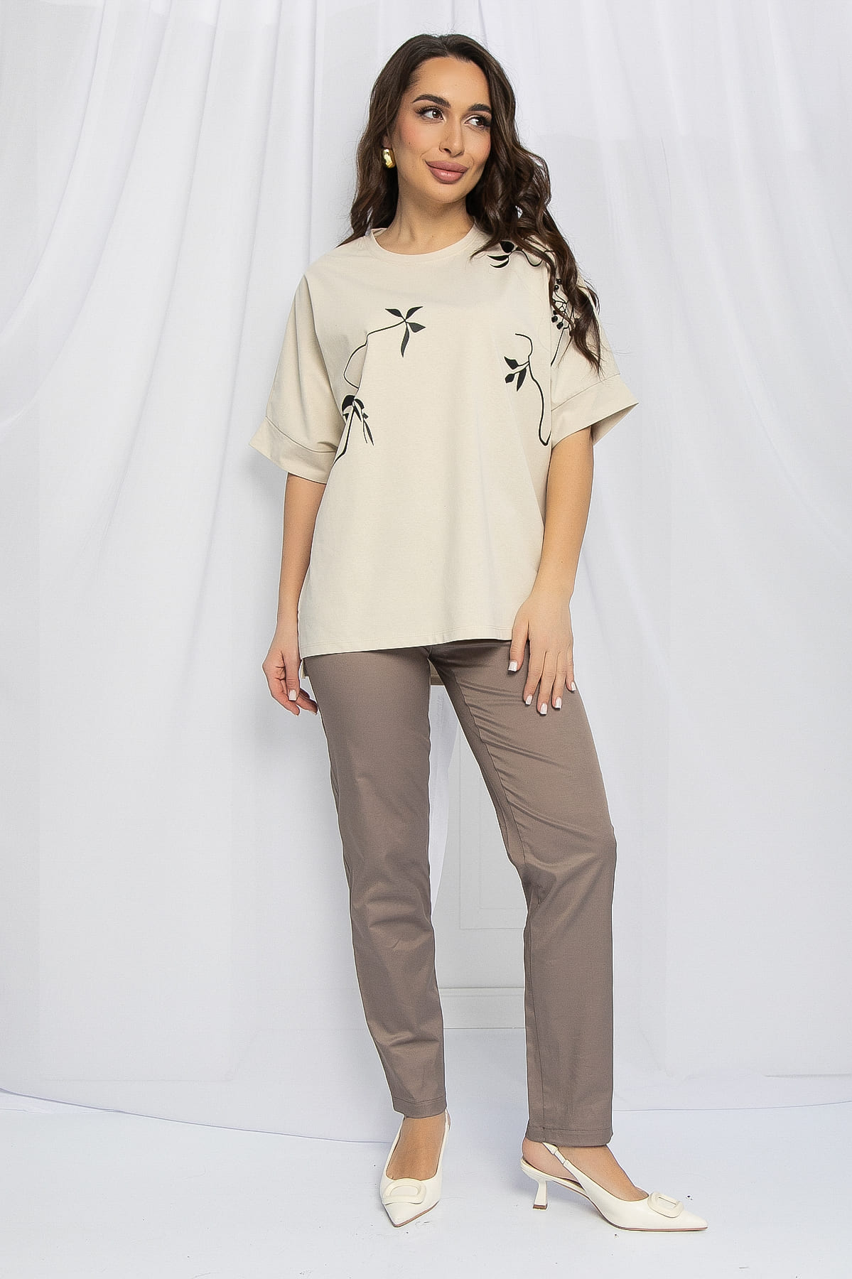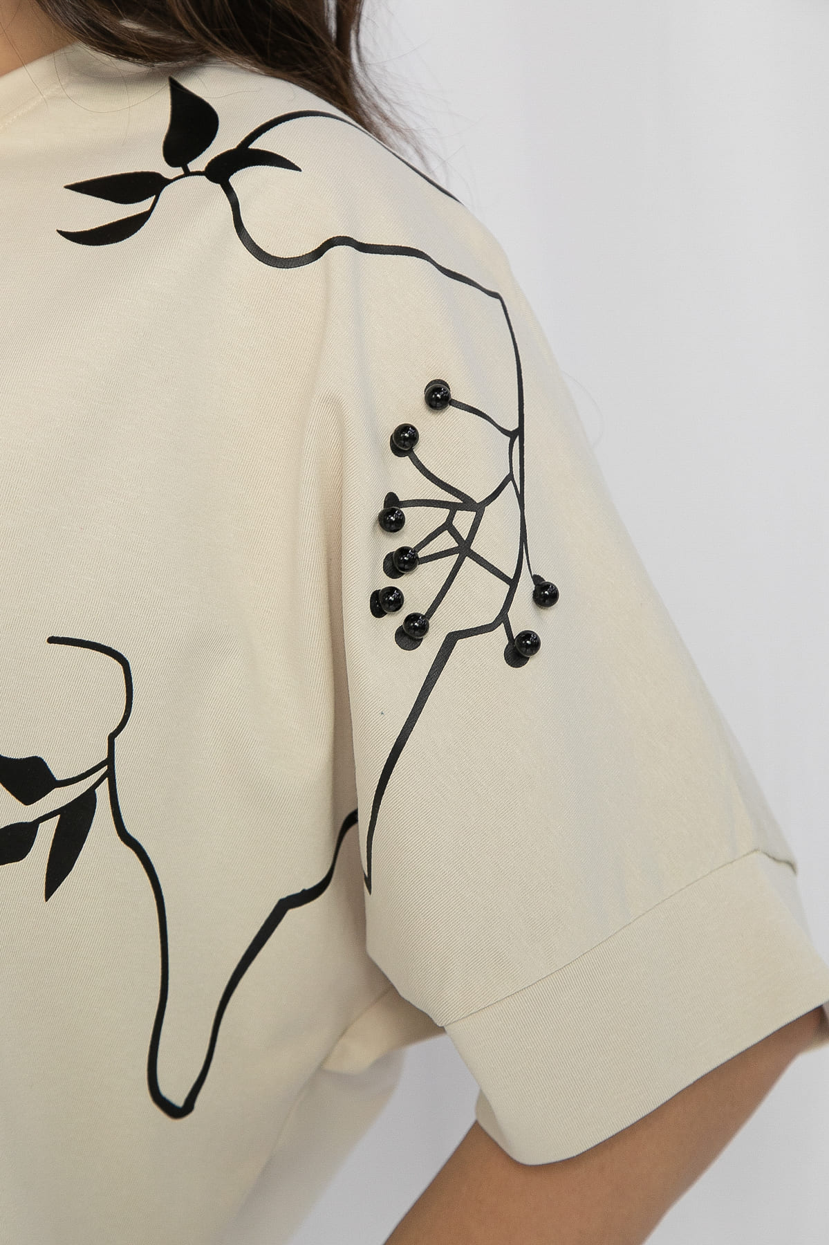 Футболка с принтом и бусинами — это модное и стильное дополнение к вашему гардеробу! Благодаря удобному крою, эта футболка обеспечит вам комфорт в течение всего дня.