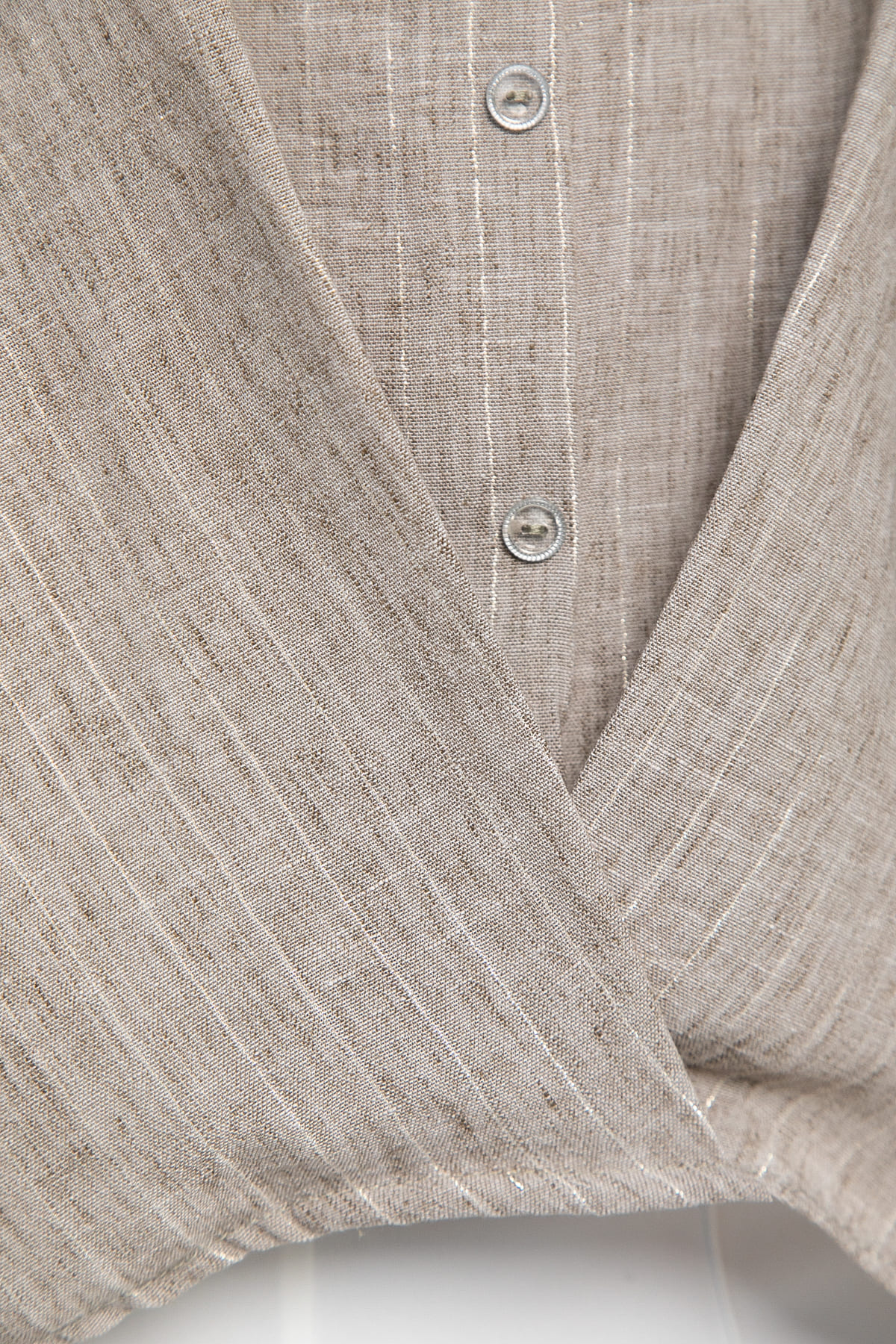 Погрузитесь в атмосферу летнего комфорта с нашей льняной блузкой в стиле бохо! Ее свободный силуэт подарит вам ощущение комфорта, позволяя чувствовать себя уверенно. Полоски из люрекса придают блузке особый шарм и делают её ярким акцентом в вашем образе. Комбинируйте её с джинсами, шортами или юбками для создания расслабленного и стильного образа.