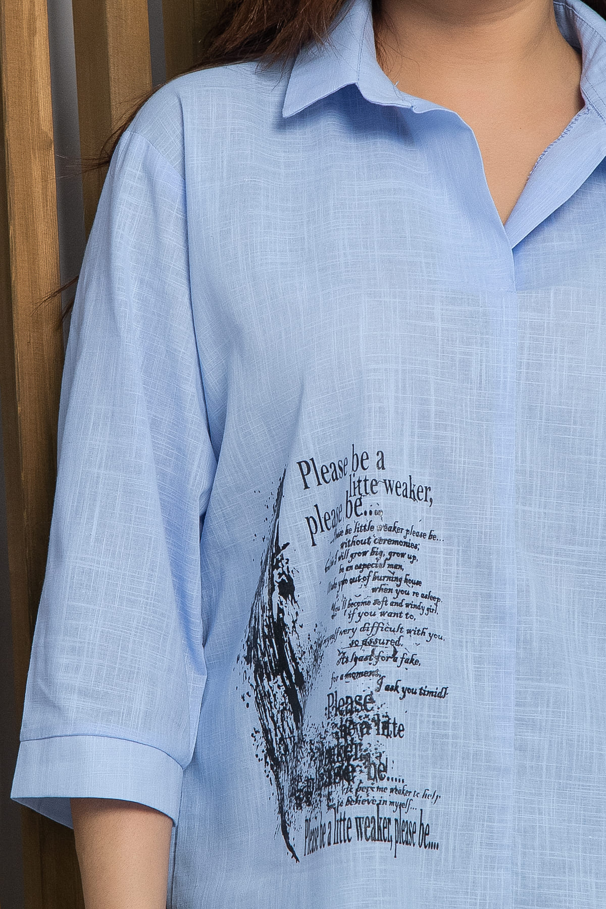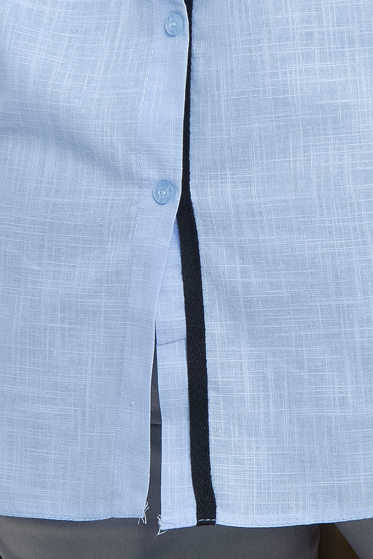 Прямая рубашка с закругленным низом — стильный и универсальный элемент вашего гардероба. Горловина рубашечного типа придаёт изделию классический вид, а втачные рукава с манжетами и застежкой на пуговку добавляют элегантности. Декоративный ряд пуговок по спинке становится изюминкой, подчеркивающей уникальность модели. Заднее полотнище длиннее переднего на 2 см, что создает интересный силуэт и обеспечивает дополнительный комфорт.
