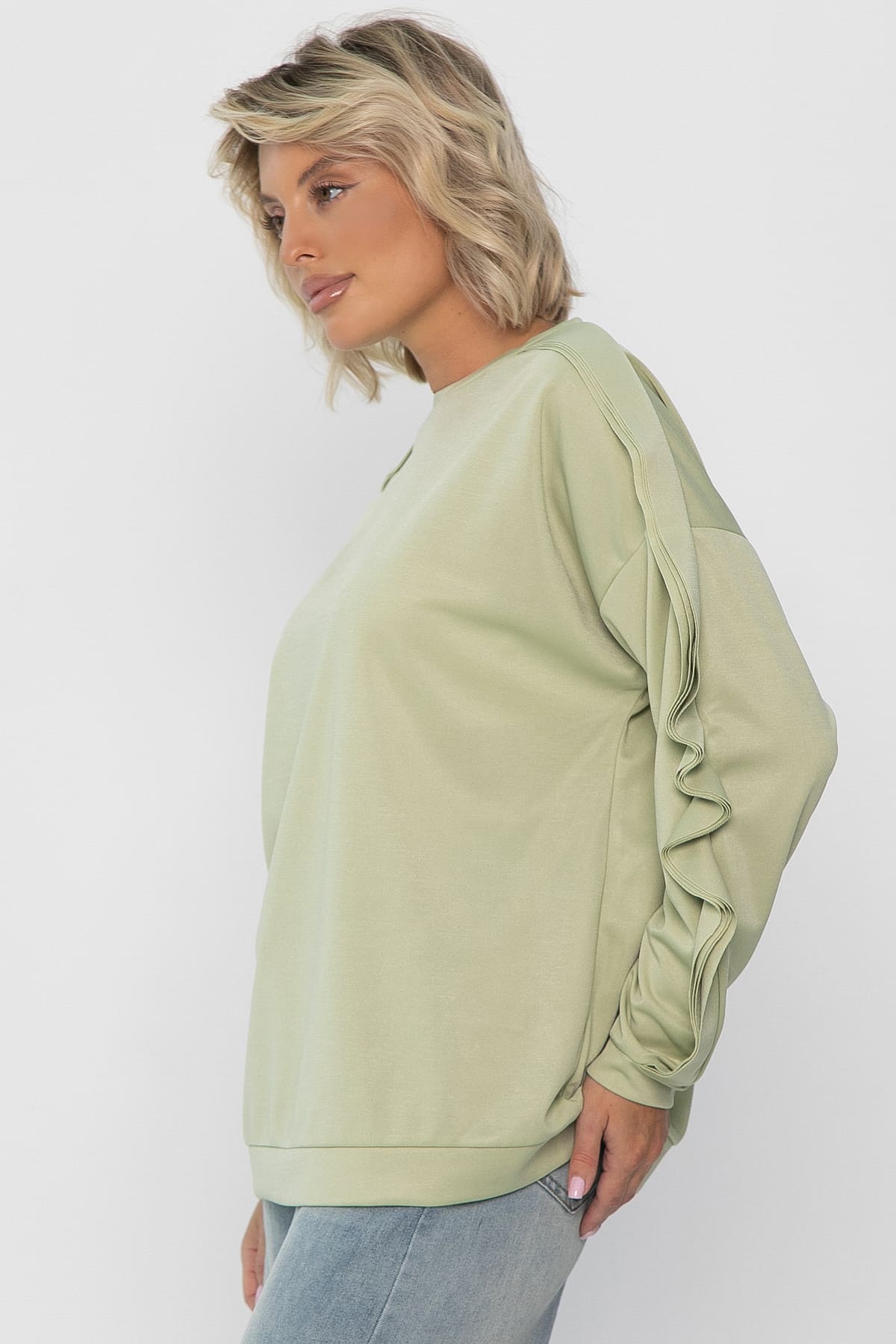 Стильный и выразительный джемпер — это то, что нужно для вашего гардероба. Он добавит изюминку в ваш образ и сделает его неповторимым. Этот универсальный джемпер без лишних деталей, таких как принты, надписи или вышивка, подойдёт к любому стилю. Особенность модели — воланы по всей длине рукавов. Они придают джемперу игривость и оригинальность.