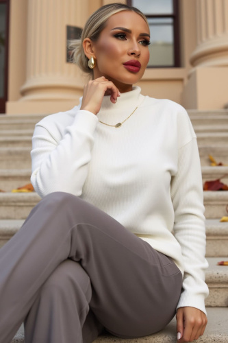 Джемпер в элегантном стиле — это отличный выбор для тех, кто ценит изысканность! Базовый молочный оттенок придает ему универсальность. Он изготовлен из мягкого трикотажного полотна «лапша», что делает его идеальным дополнением к строгим деловым костюмам.