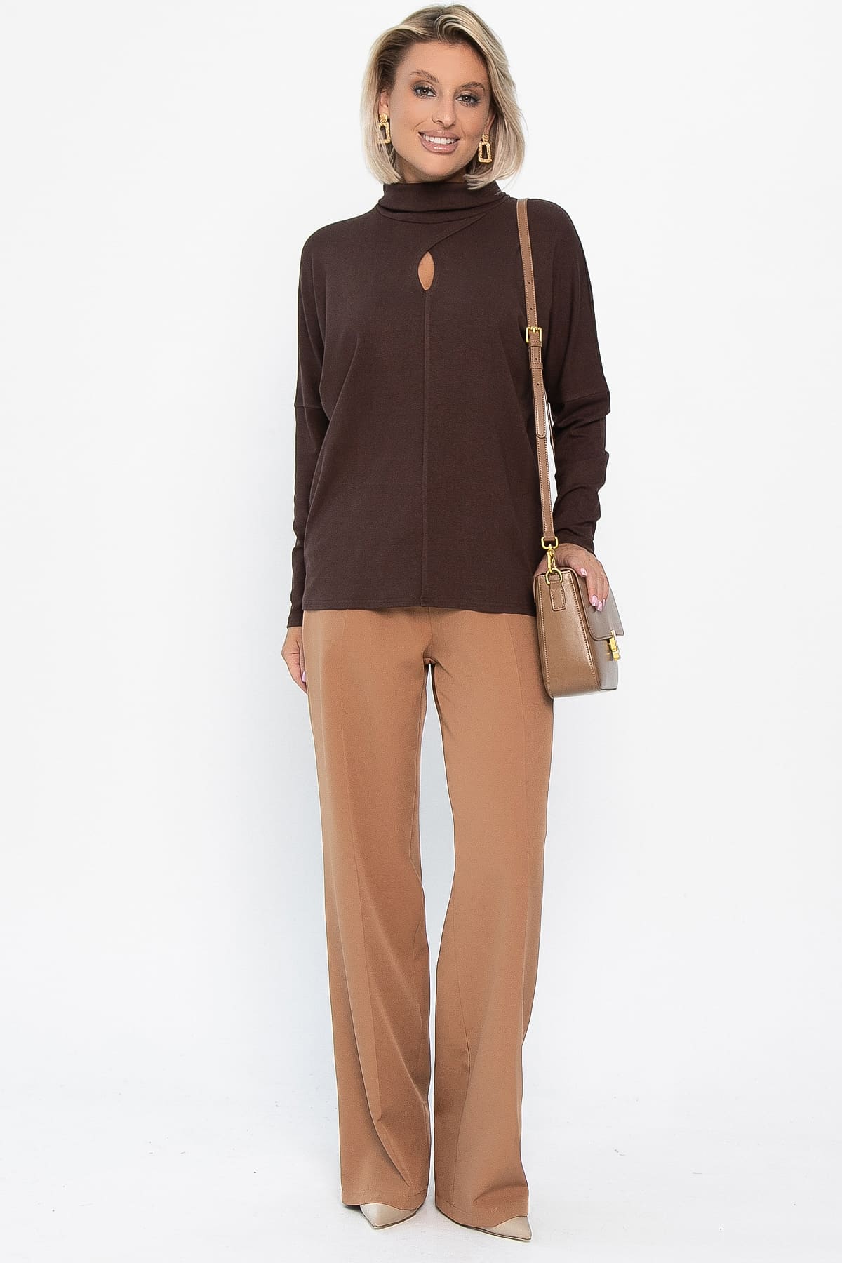 Разнообразьте свой гардероб стильным джемпером, который станет универсальным элементом вашего образа. Изготовленная из мягкого вязаного трикотажа, она обеспечит вам комфорт на протяжении всего дня. Джемпер имеет спущенные рукава и горловину в форме хомута. Каплевидный вырез привлекает внимание, придавая образу изысканности. Эта модель станет основой для создания разнообразных стильных образов. Она идеально подходит для прохладных вечеров и осенних прогулок, и непременно займёт почётное место в вашем гардеробе.