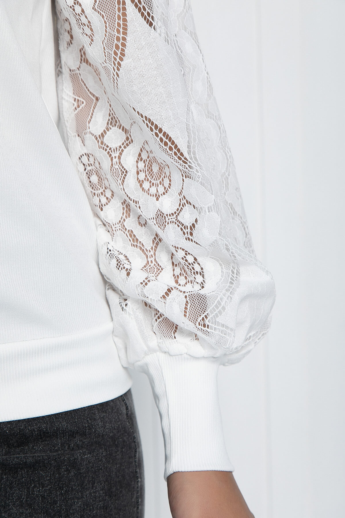 Мягкий джемпер с пышным ажурным рукавом станет фаворитом осеннего гардероба. Такая модель способна гармонично украсить любой образ. Для соблюдения баланса в силуэте к объёмному верху подбирайте ровный или зауженный низ.