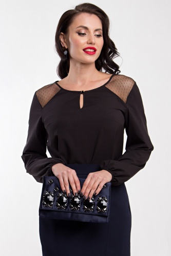 По плечам блуза выполнена из стрейч сетки в мелкий горошек;