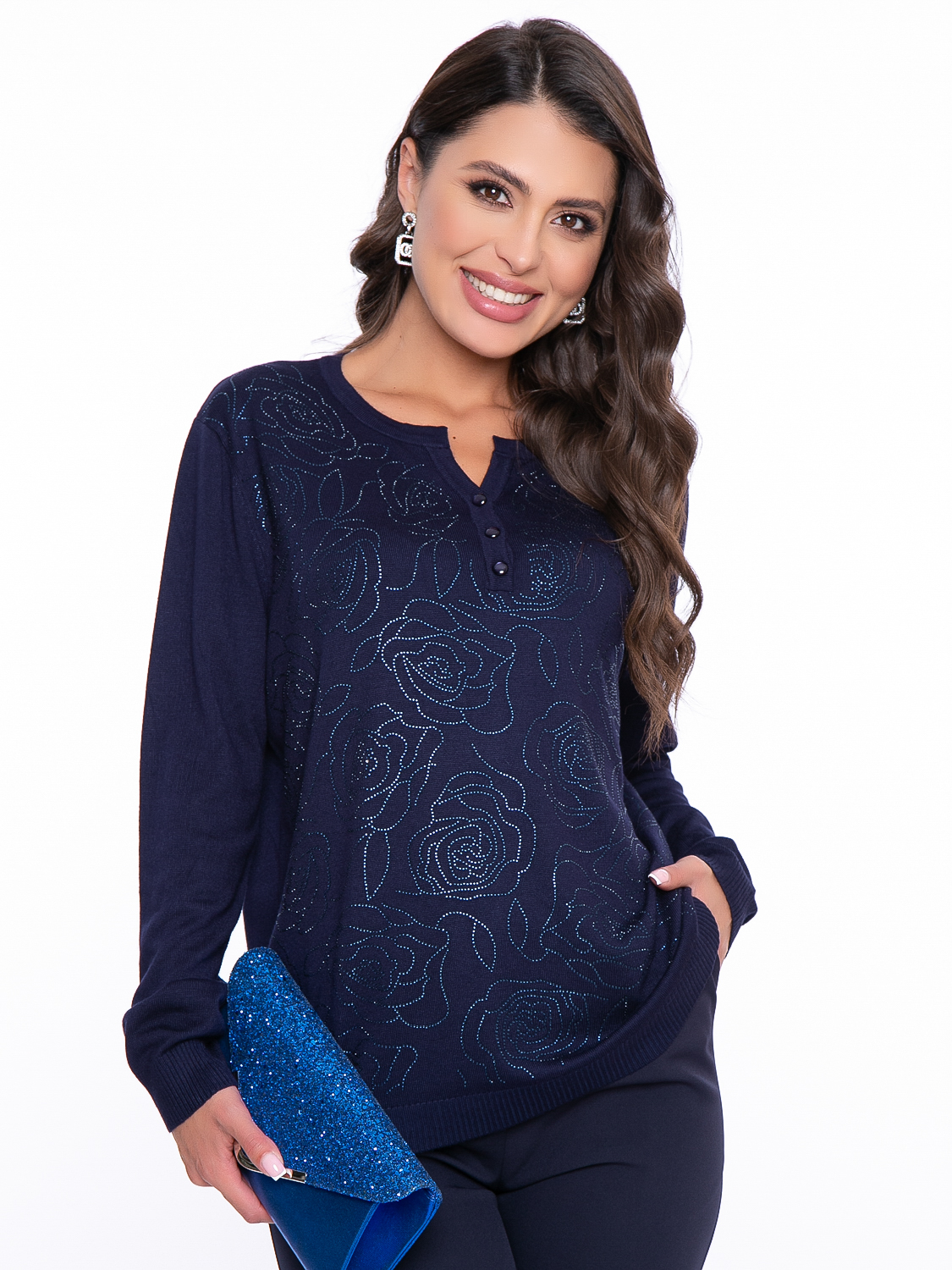 - Передняя часть кофты оформлена термостразами в виде аппликации - розы;