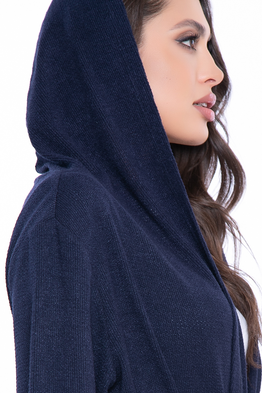 - Трикотажный кардиган с шалевым воротником-капюшоном;