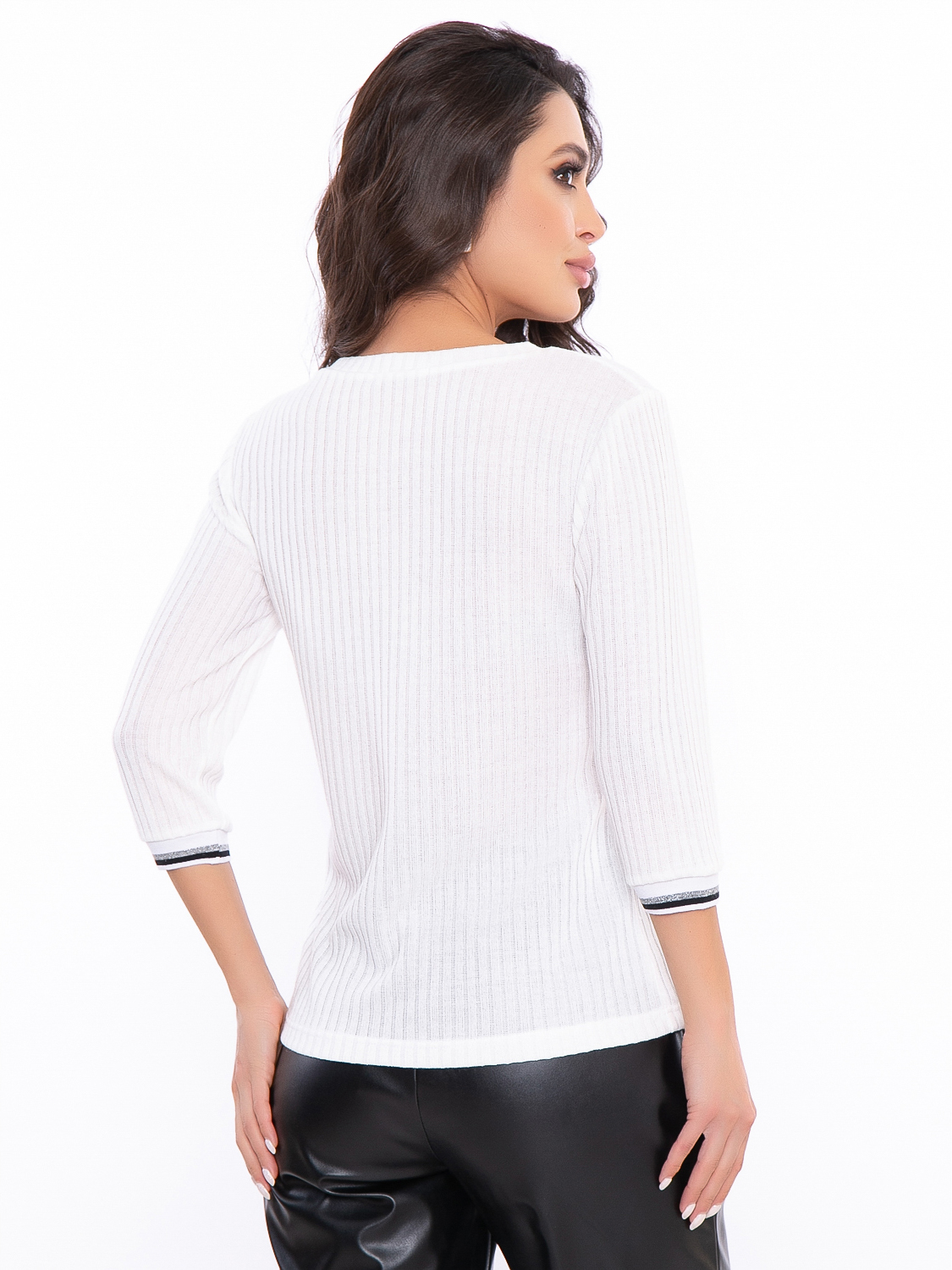 - Джемпер из хлопковой ткани в универсальном белом цвете;