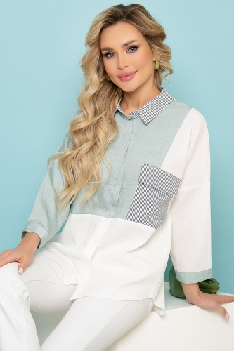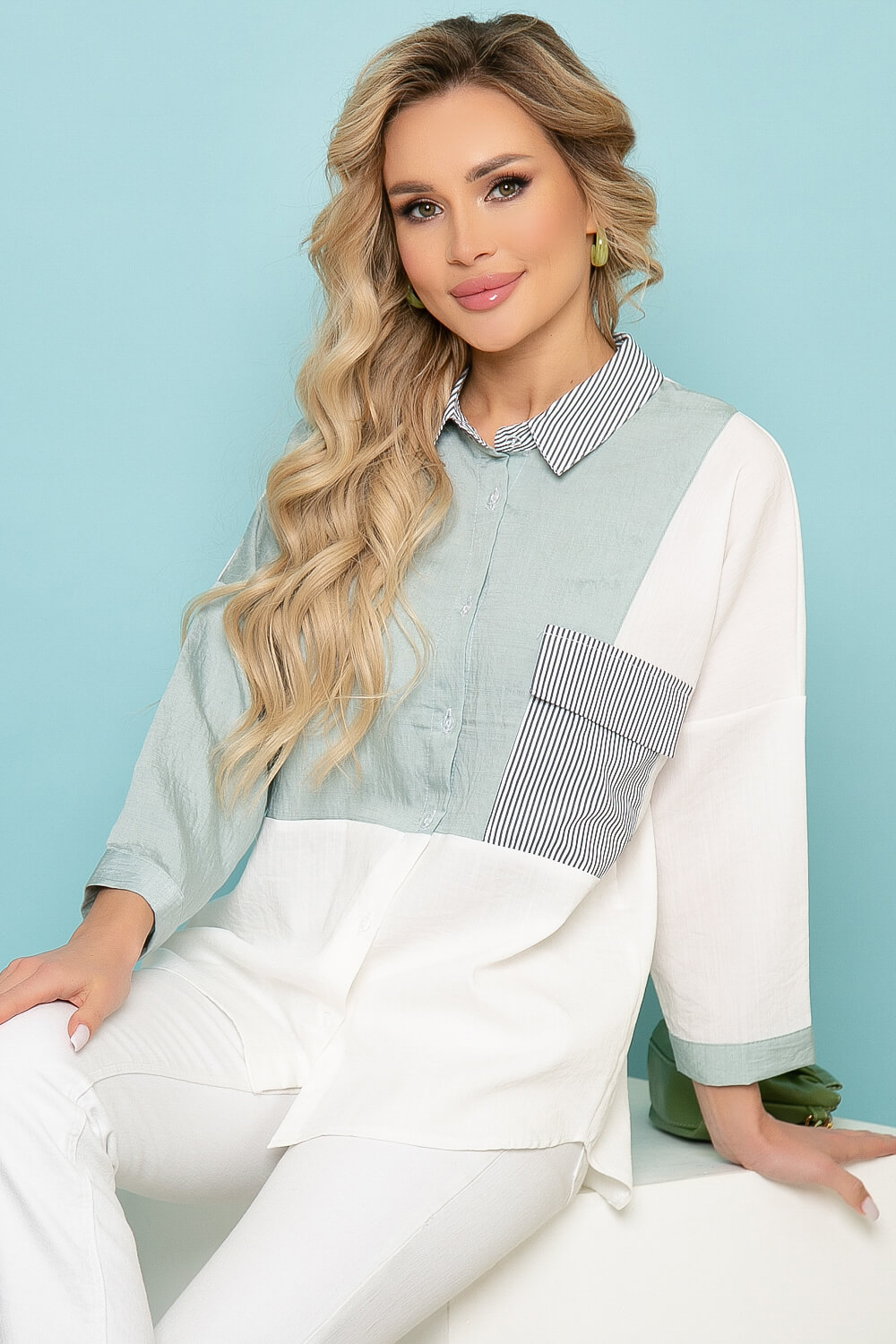 Рубашка из хлопка - идеальный вариант для весенне-летнего гардероба. Идеально будет сочетаться с джинсами, брюками или юбками. Рубашка со спущенным плечевым швом, рукав семь восьмых, по переду застёгивается на пуговицы. Спинка удлинена. Рубашечный воротничок, на груди есть функциональный кармашек.