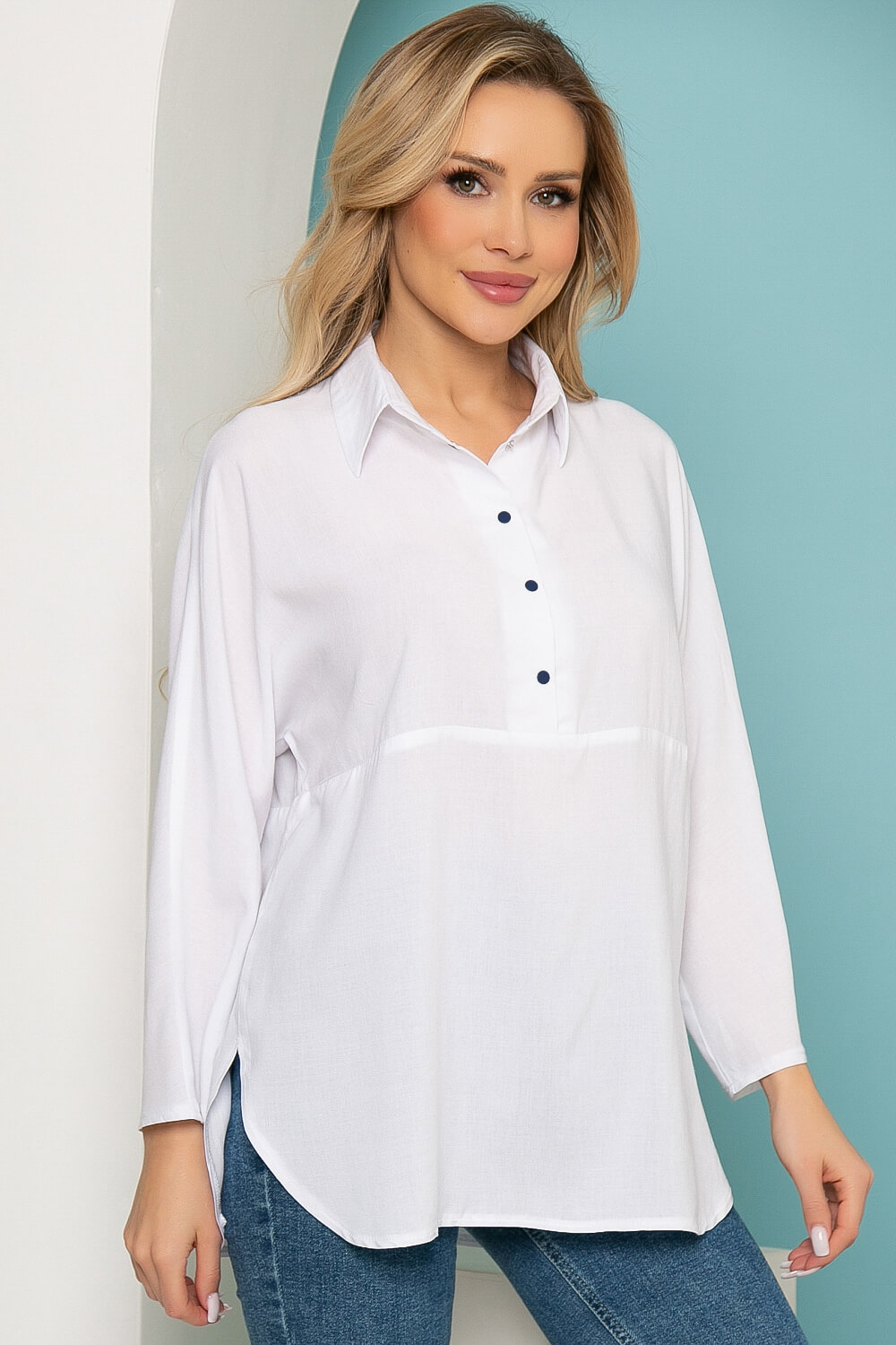 Рубашка свободного кроя из вискозы - находка для летнего сезона. В ней не будет жарко и она защитит Вас от палящего солнца. Рубашка застёгивается на кнопки, имеет отложной воротничок. Цельнокроенный рукав благодаря отсутствию лишних швов подарит невероятный комфорт при носке. Края рубашки скруглены.